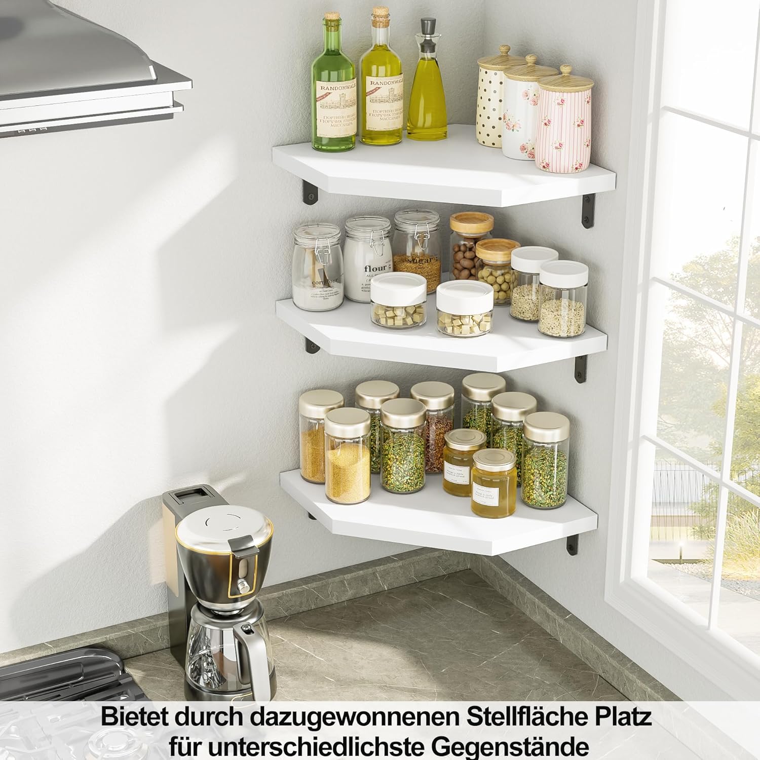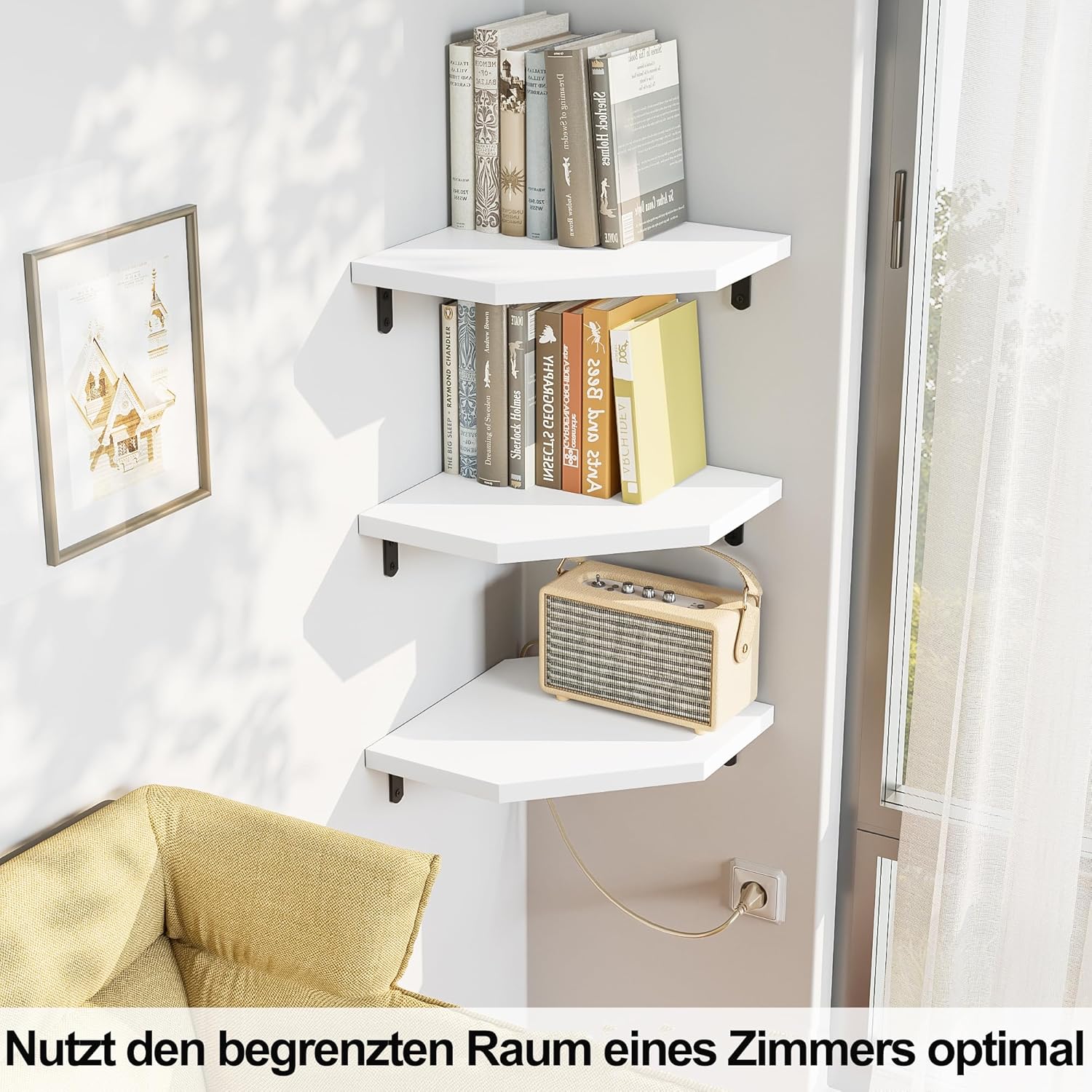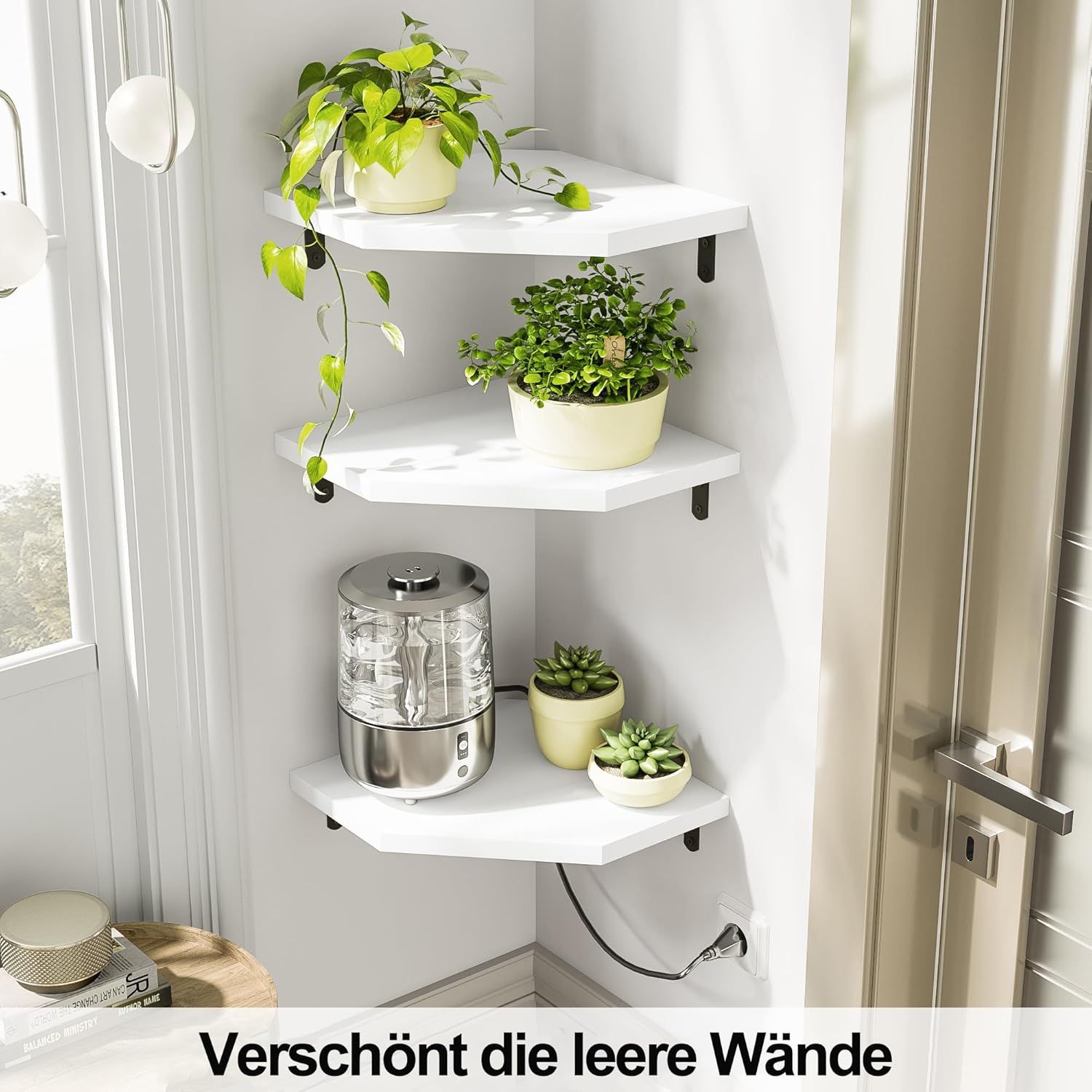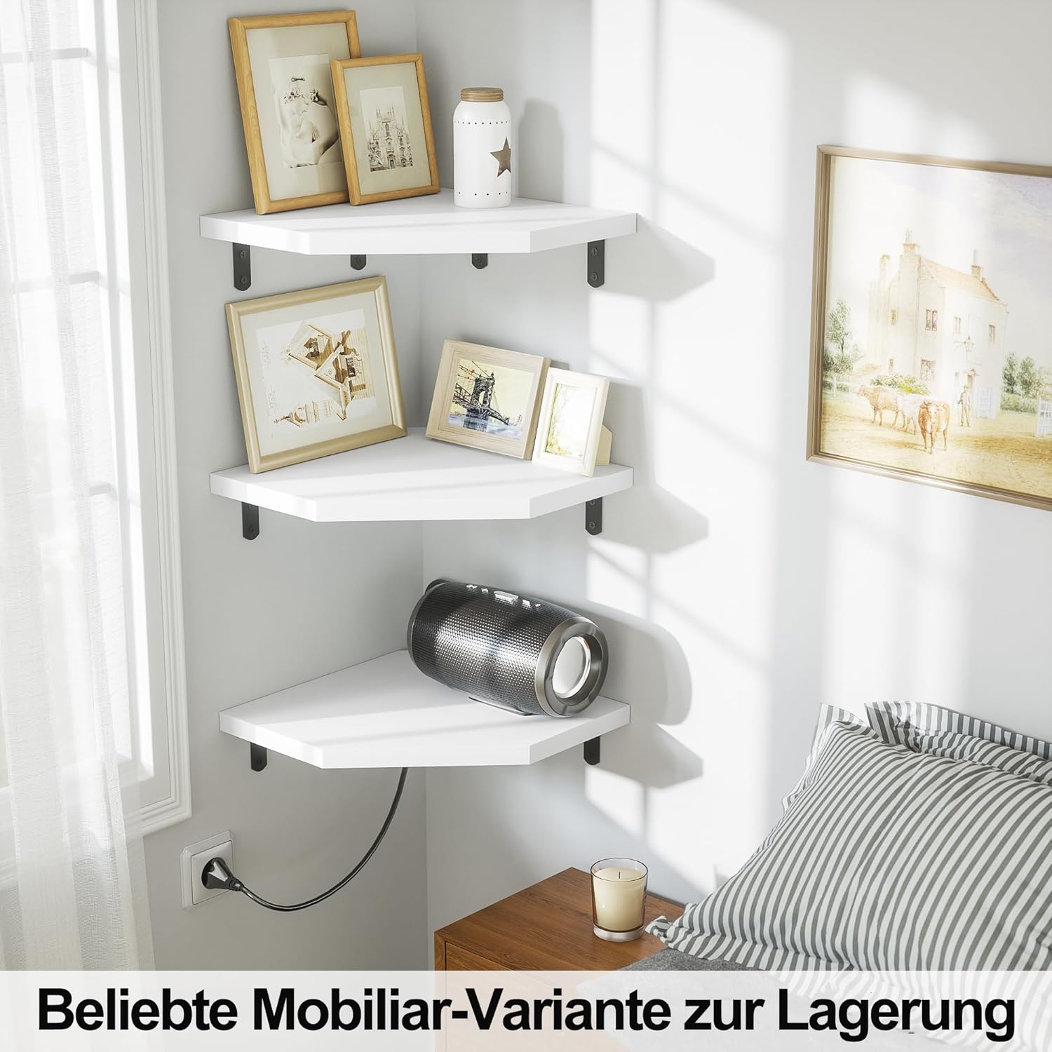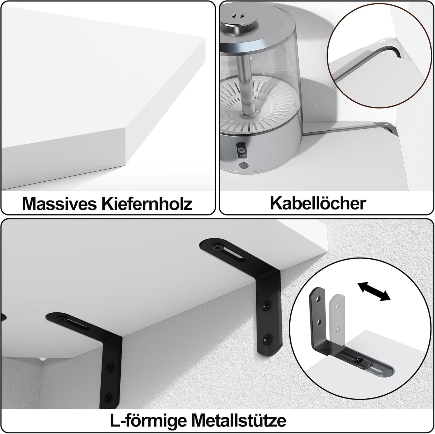 Kotni regal iz 100 % masivnega borovega lesa je idealna rešitev za prihranek prostora v vsakem kotičku doma. Njegova moderna šestkotna oblika omogoča shranjevanje ali razstavljanje različnih predmetov. Zaradi lakirane površine je regal odporen proti plesni in razpadanju lesa.
