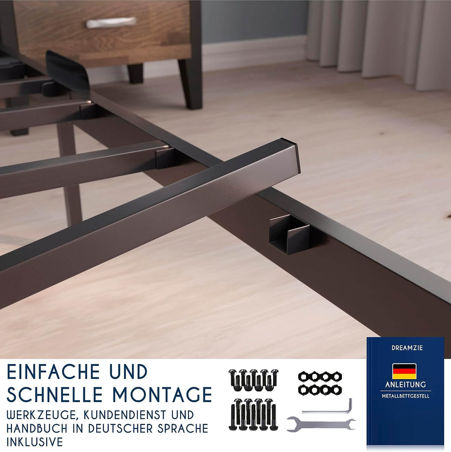 Dreamzie kovinska posteljica ponuja trdnost in dodatni shranjevalni prostor, idealna za vsak sodoben dom.