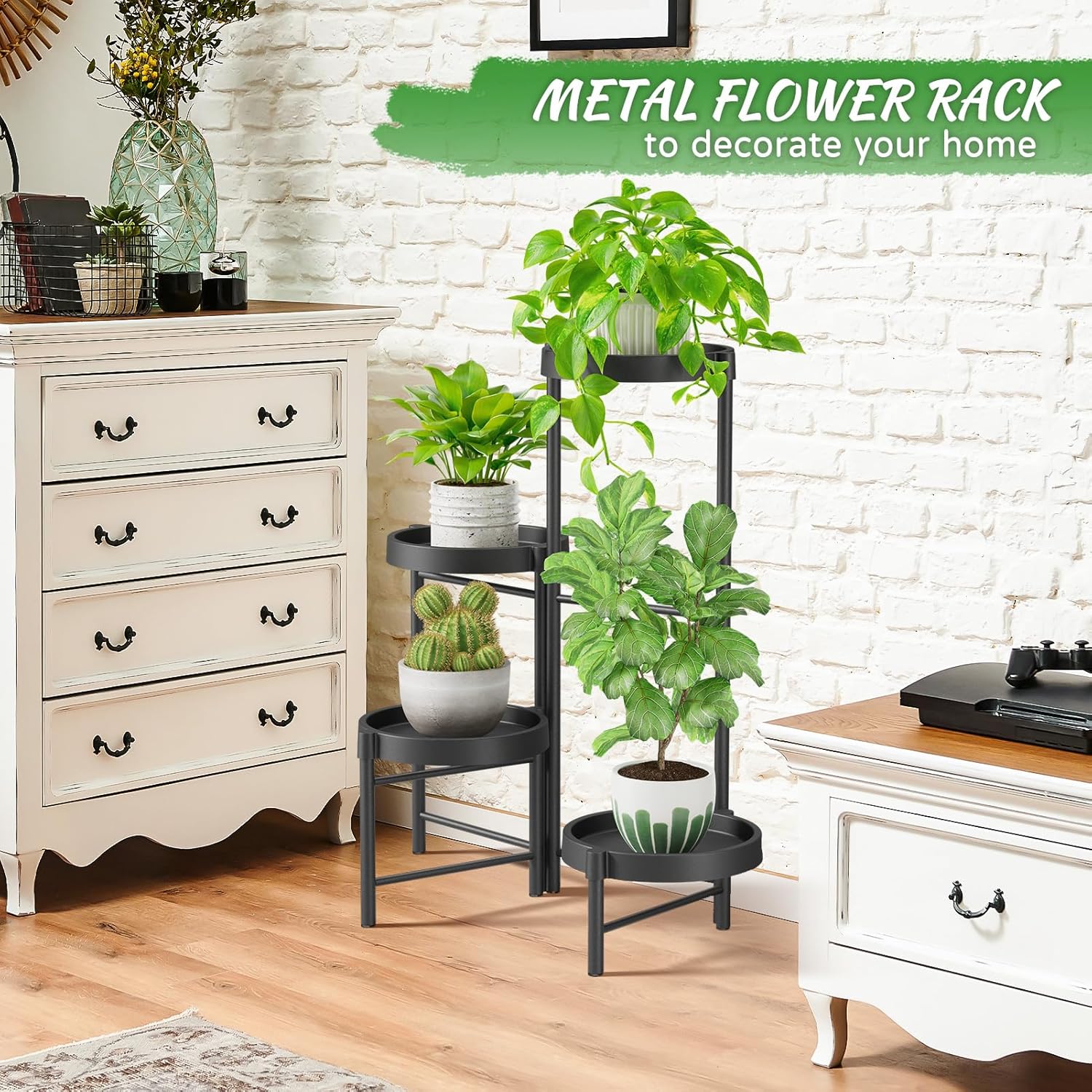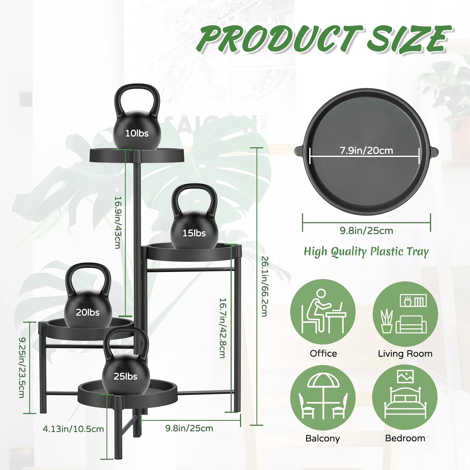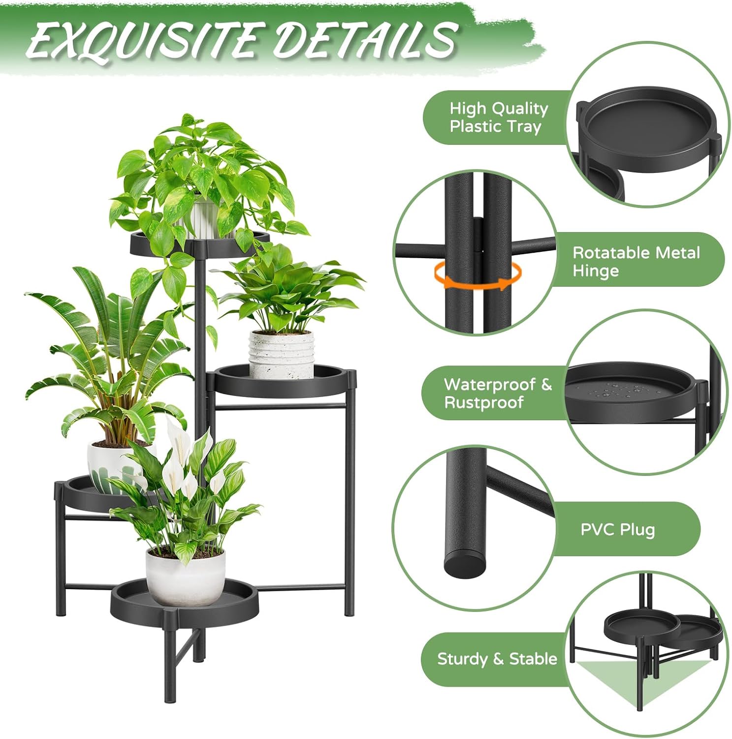 Štirinivojsko stojalo za rastline omogoča estetsko in funkcionalno ureditev rastlin v vsakem kotičku doma. Trpežna kovinska konstrukcija z zaščitnim premazom zagotavlja dolgo življenjsko dobo, tudi na prostem. Zasnova brez vijakov omogoča hitro in enostavno sestavljanje brez orodja.