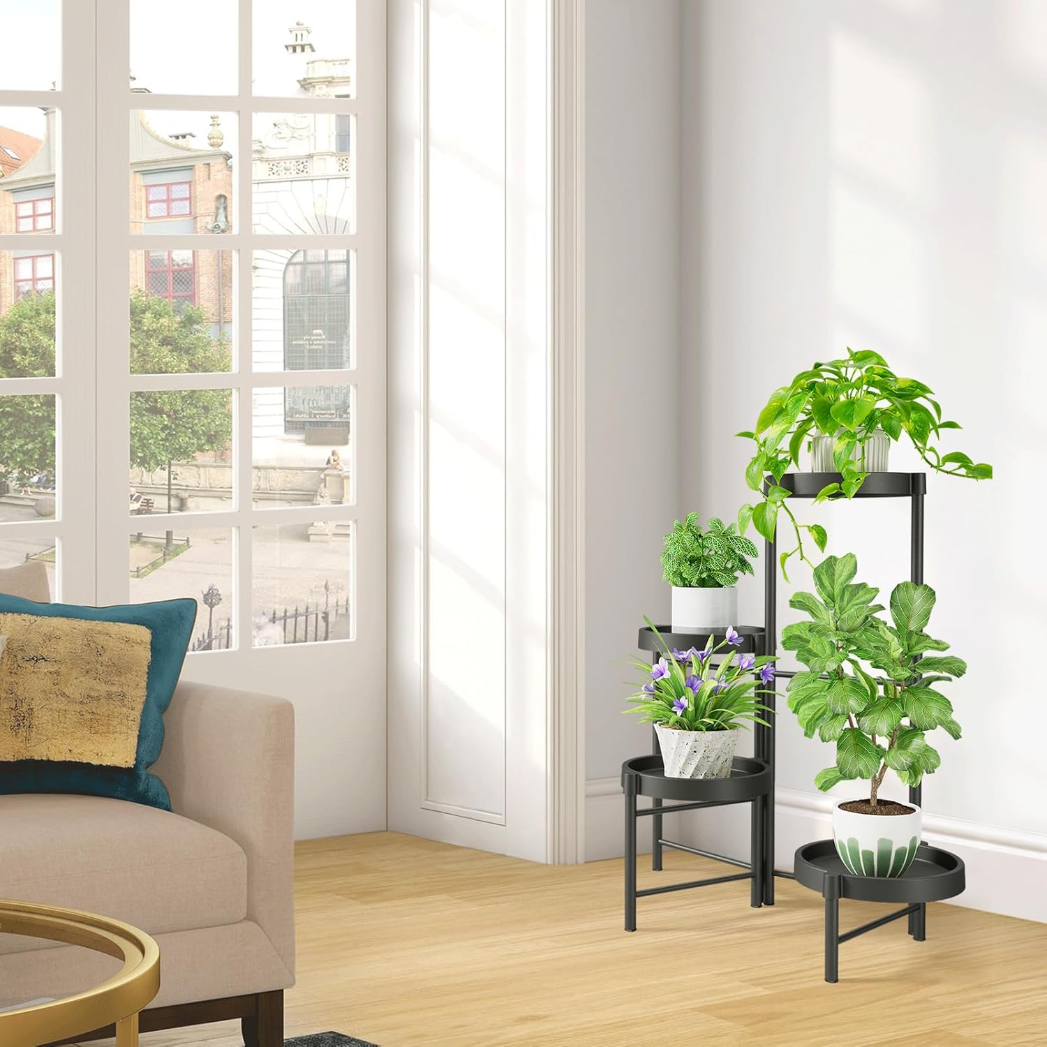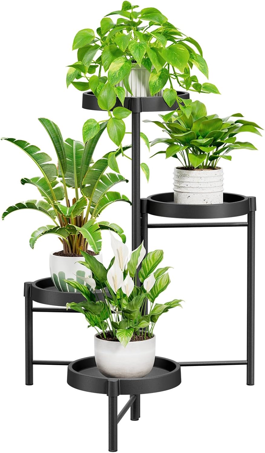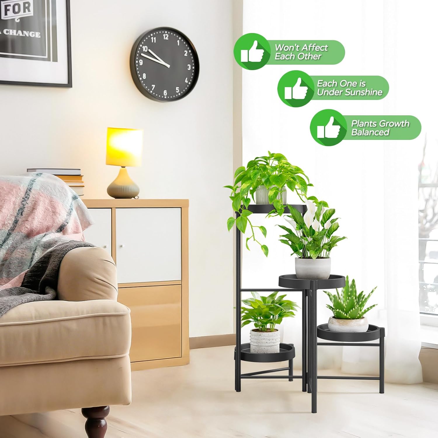 Štirinivojsko stojalo za rastline omogoča estetsko in funkcionalno ureditev rastlin v vsakem kotičku doma. Trpežna kovinska konstrukcija z zaščitnim premazom zagotavlja dolgo življenjsko dobo, tudi na prostem. Zasnova brez vijakov omogoča hitro in enostavno sestavljanje brez orodja.