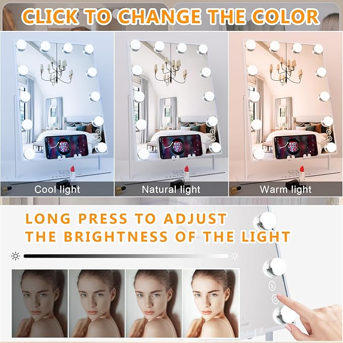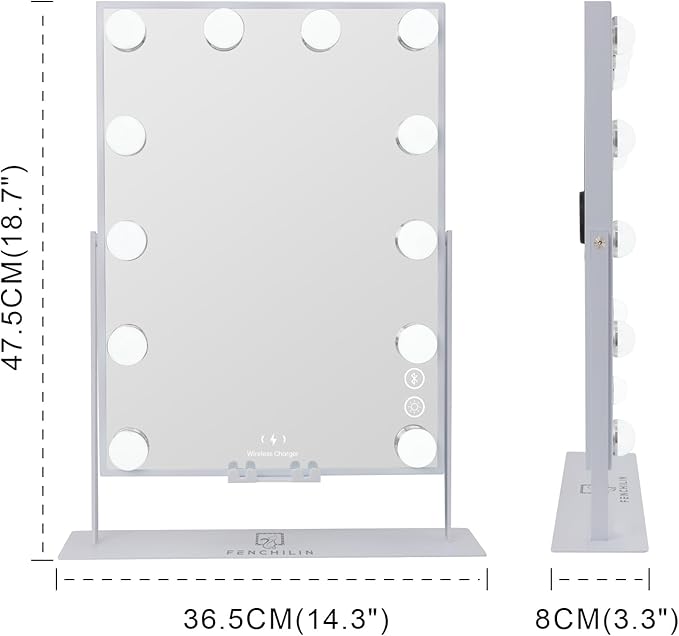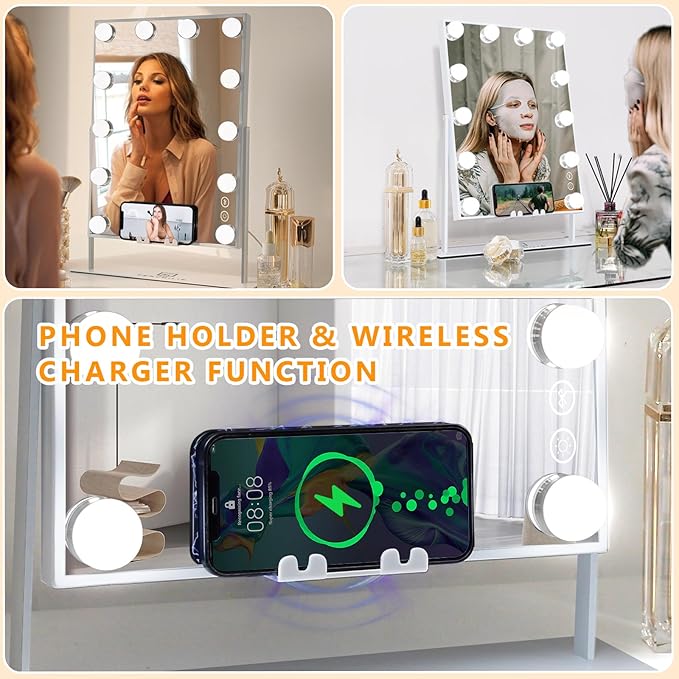 Hollywood kozmetično ogledalo z osvetlitvijo in brezžičnim polnjenjem pametnih telefonov. Vgrajeni zvočnik omogoča predvajanje glasbe, klicev ali videopovezav med ličenjem. Ogledalo ima 3 barvne temperature svetlobe, nastavljivo svetlost in 360° vrtenje za popoln pregled obraza.