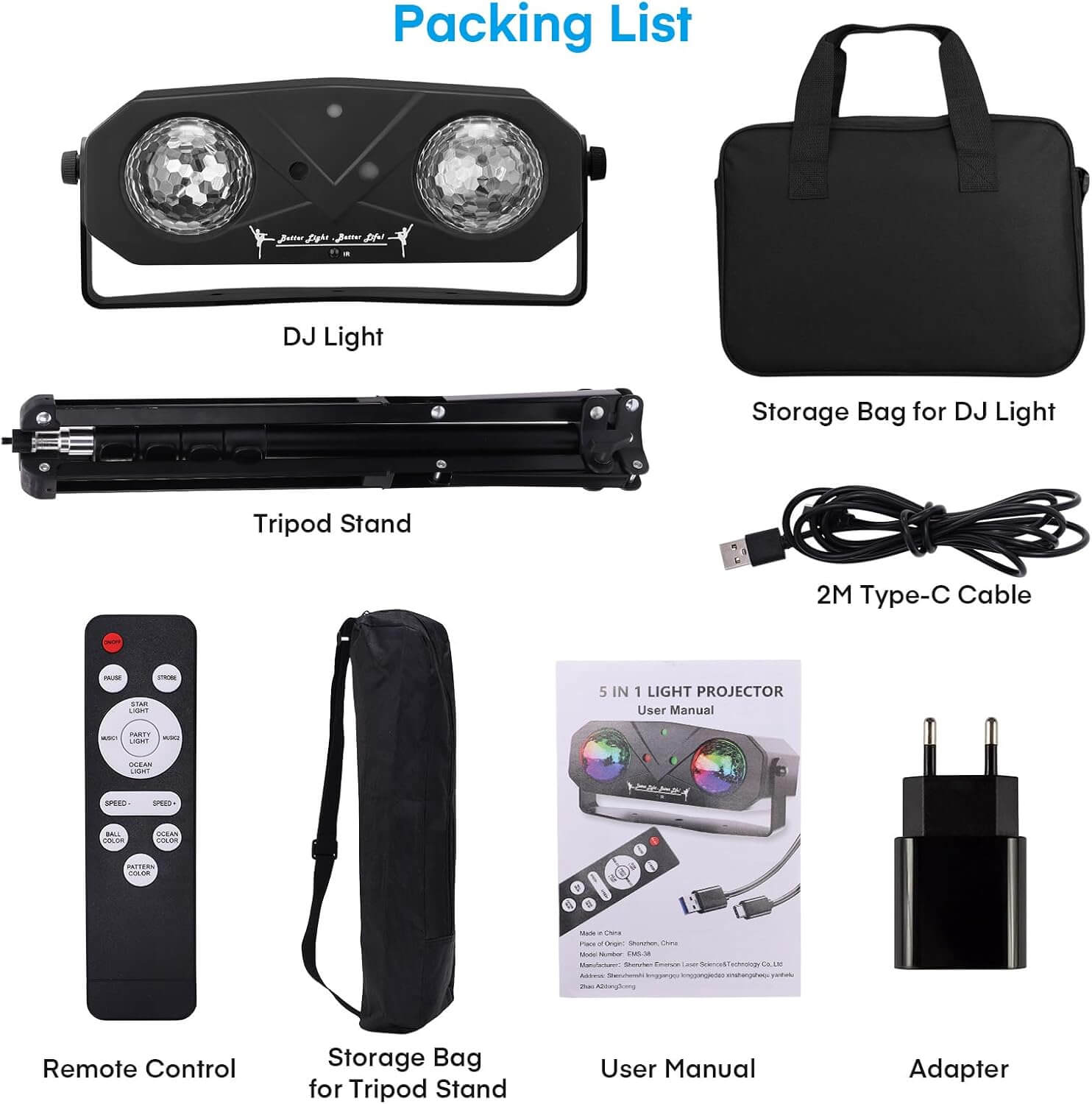 Večnamenska disco LED svetilka združuje več svetlobnih učinkov v eni prenosni napravi. Namenjena je ustvarjanju dinamičnega vzdušja na zabavah, rojstnih dnevih, porokah in domači uporabi, z možnostjo samodejnega delovanja, upravljanja na zvok in daljinskega nadzora.