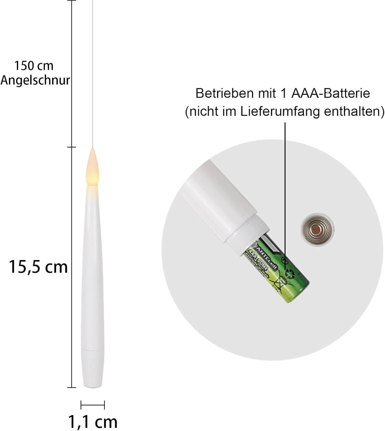 Set 22 sveč za čarobno dekoracijo: Komplet vključuje 22 LED lebdečih sveč, vsaka z višino 15,5 cm in priloženo 150 cm dolgo ribiško vrvico. Idealen za ustvarjanje magičnega vzdušja v vsakem prostoru.