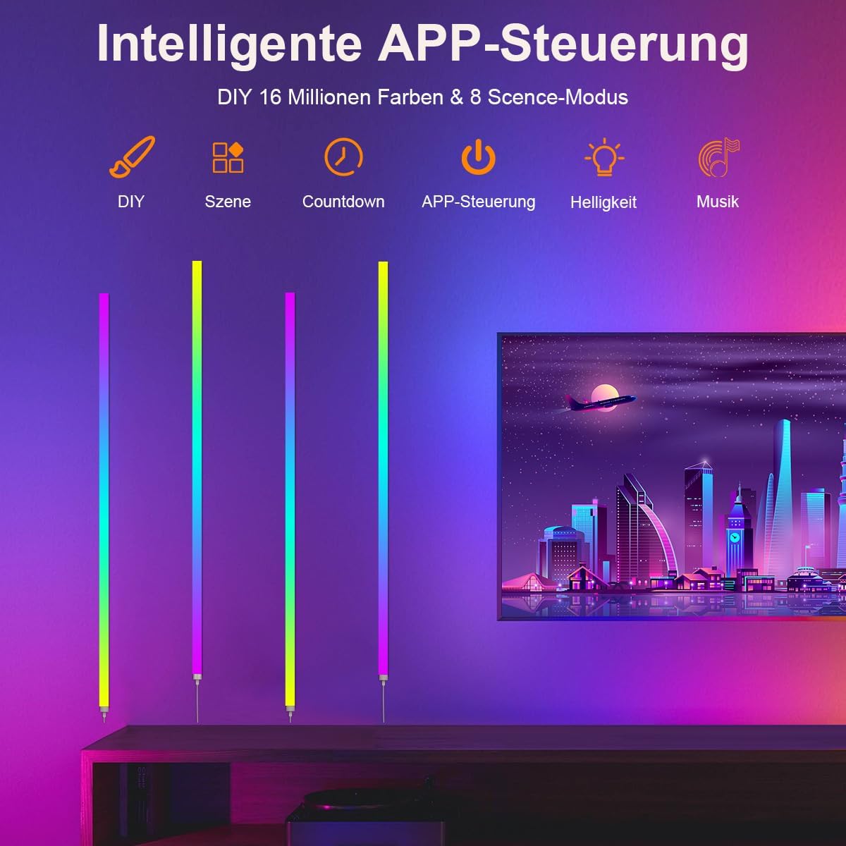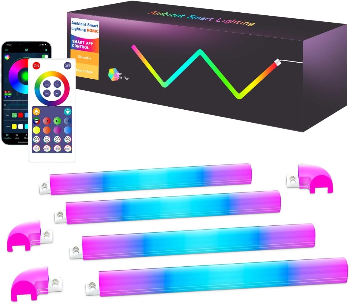 RGBIC LED stenska svetilka z možnostjo prilagajanja oblike popestri vsak igralni kotiček ali dnevno sobo. Sinhronizacija z glasbo in visoka občutljivost mikrofona omogočata osupljivo svetlobno doživetje. Uporabniku prijazna upravljalna aplikacija in daljinski upravljalnik omogočata enostavno prilagajanje osvetlitve.
