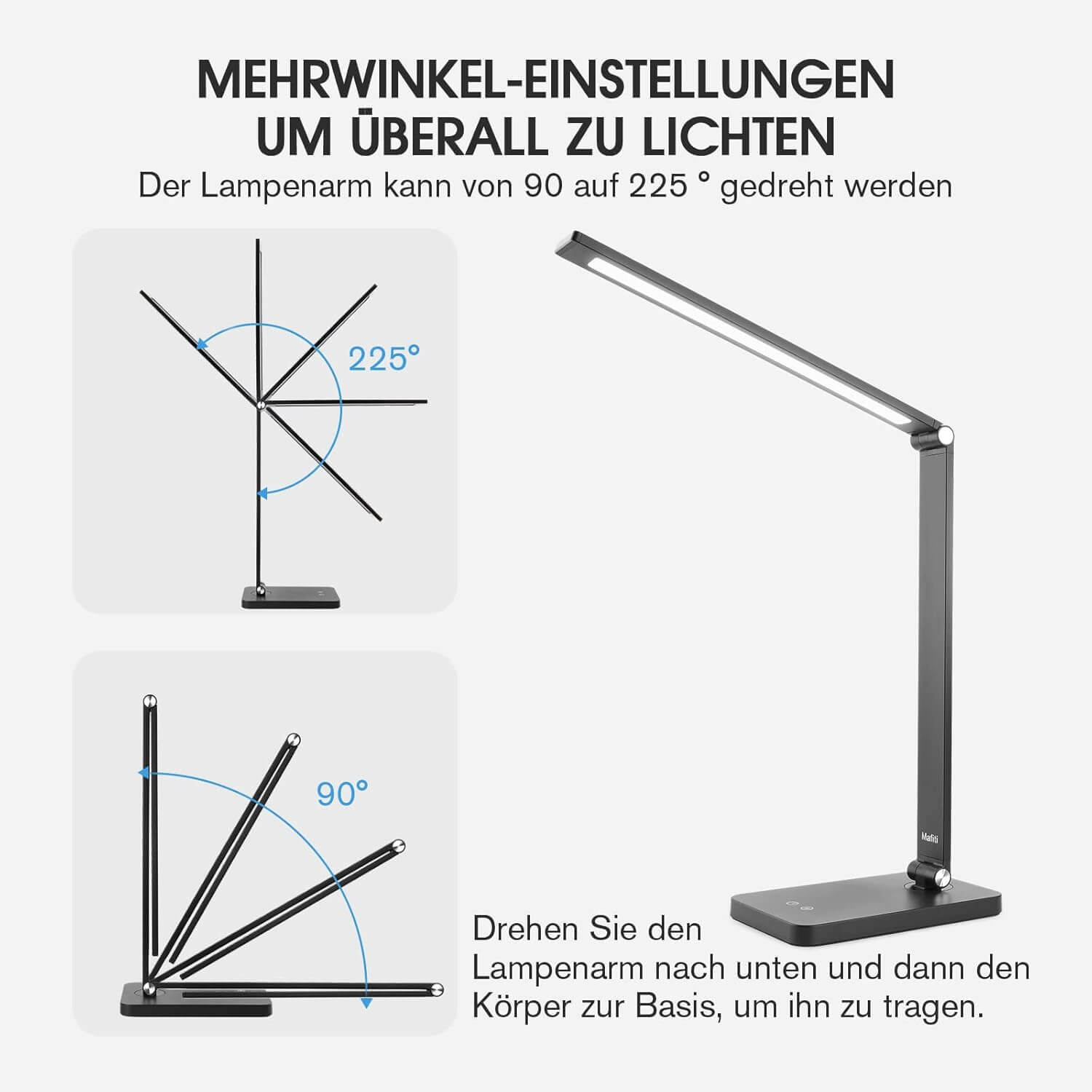 Mafiti LED namizna svetilka je popolna izbira za udobno osvetlitev, ki varuje oči in poskrbi za elegantno dopolnitev vašega delovnega prostora, spalnice ali otroške sobe.