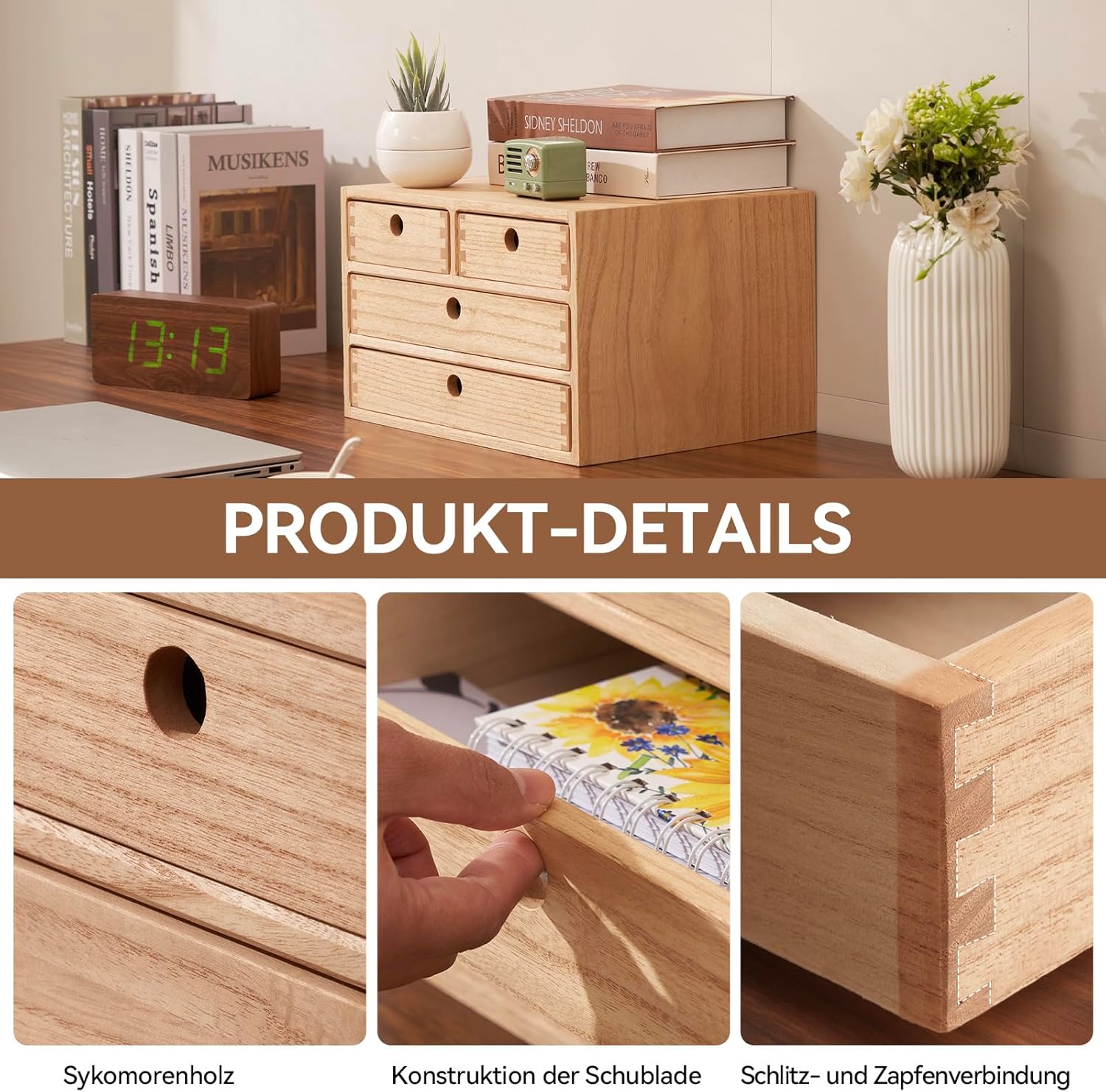Organizator iz masivnega lesa ponuja elegantno in funkcionalno rešitev za shranjevanje pisarniških potrebščin. Z ročnim izdelovanjem in tradicionalnimi spoji je konstrukcija stabilna in brez uporabe žebljev. Veliki ravni predaliomogočajo urejeno shranjevanje dokumentov, knjig in drugih predmetov.