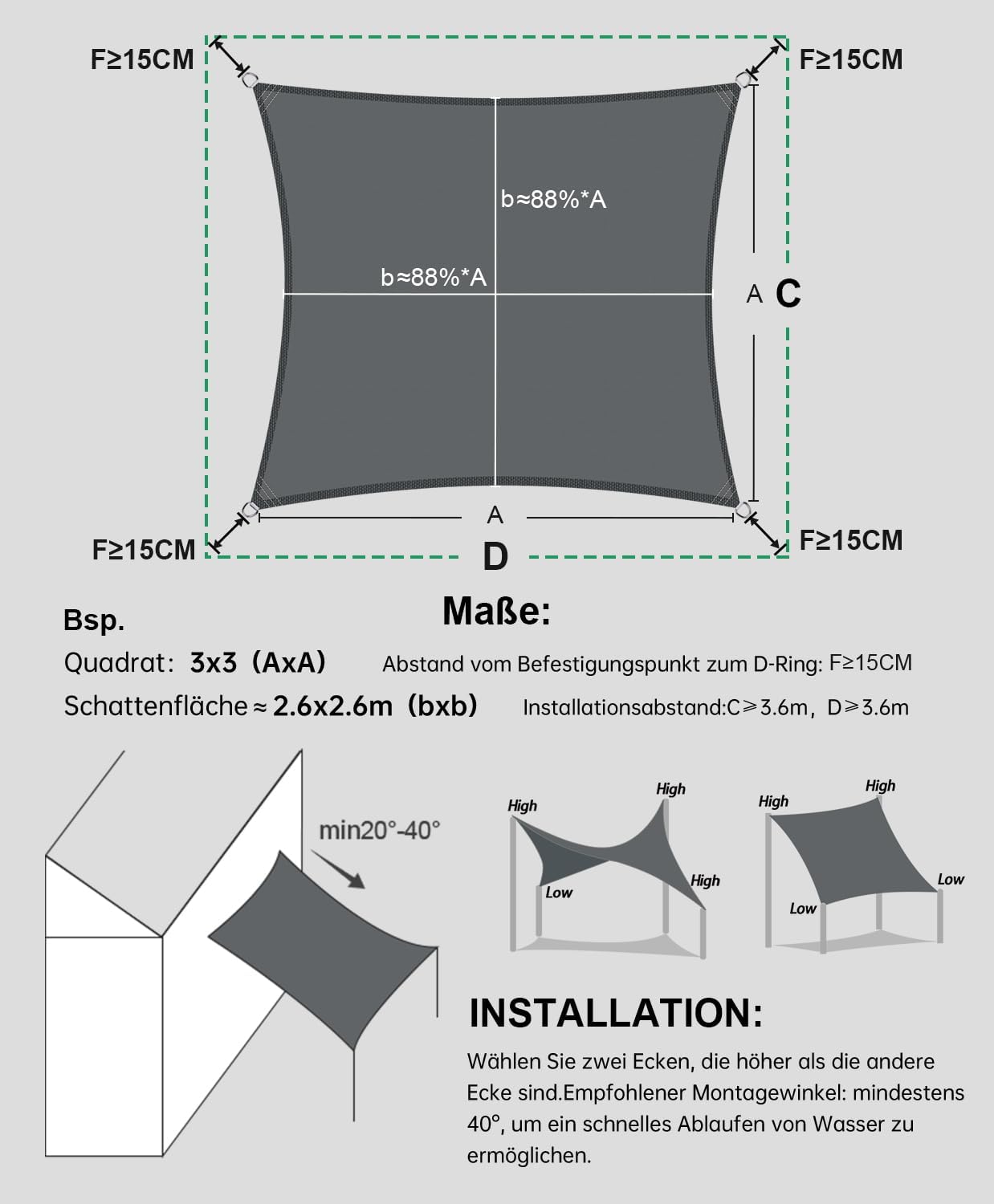 Prilagodljiva uporaba: idealno senčno jadro za terase, vrtove, bazene, pergole, parkirišča ali otroška igrišča.