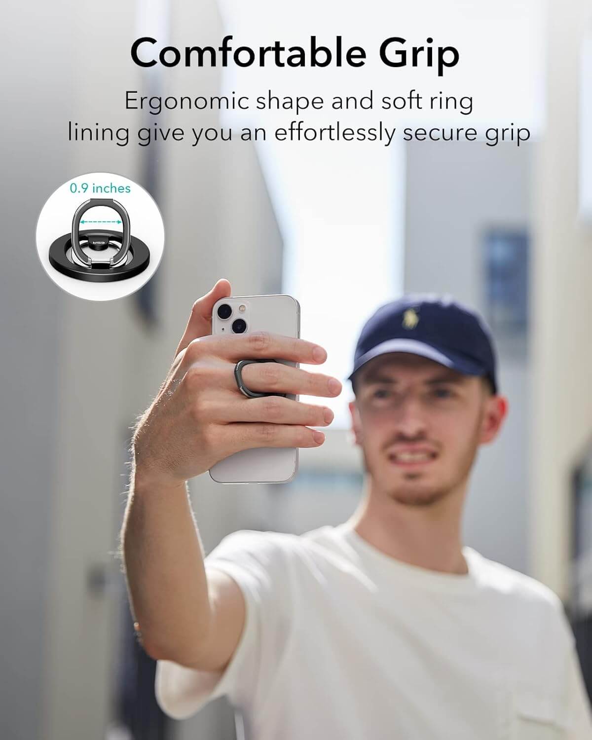 Praktičen in eleganten magnetni obroč z močnim oprijemom, prilagodljivim stojalom ter združljivostjo z MagSafe, zasnovan za maksimalno udobje in uporabnost.