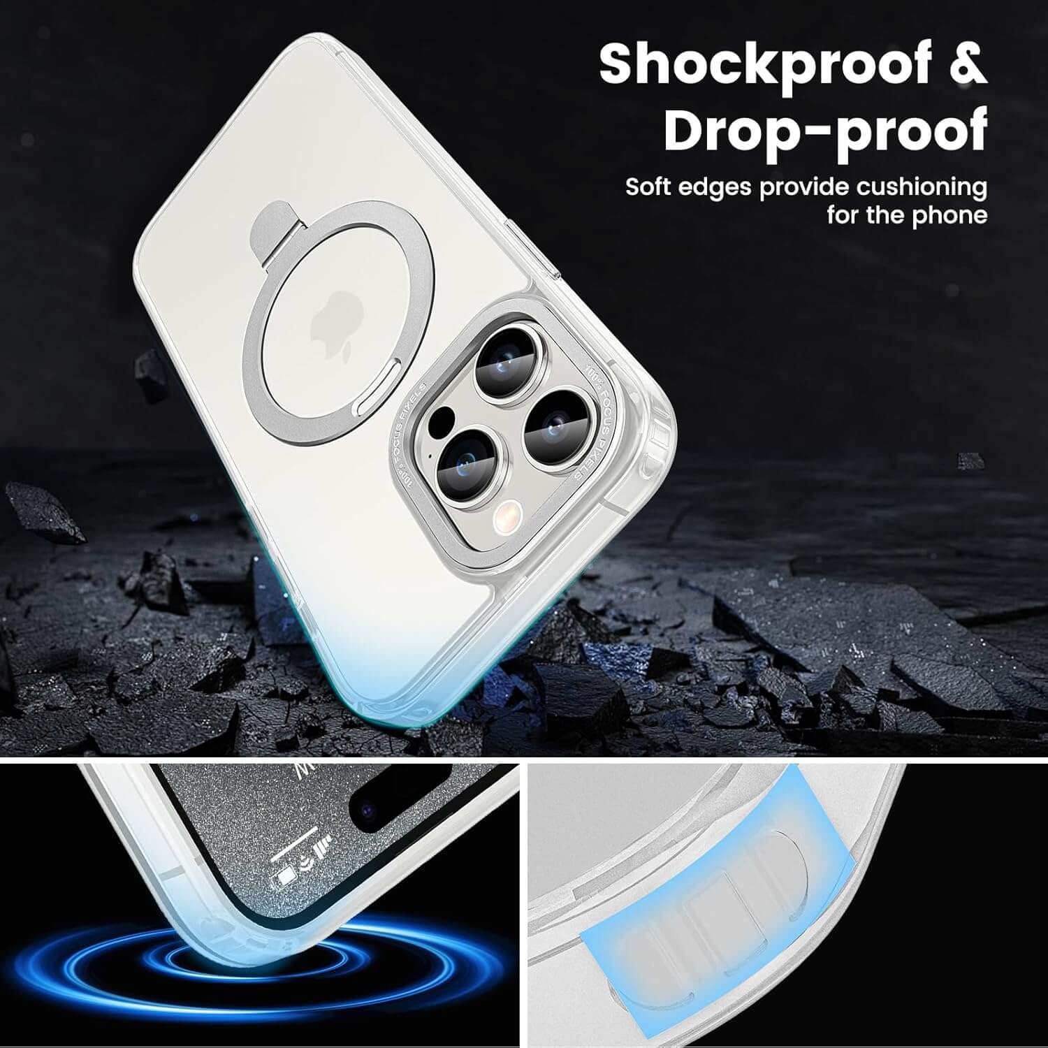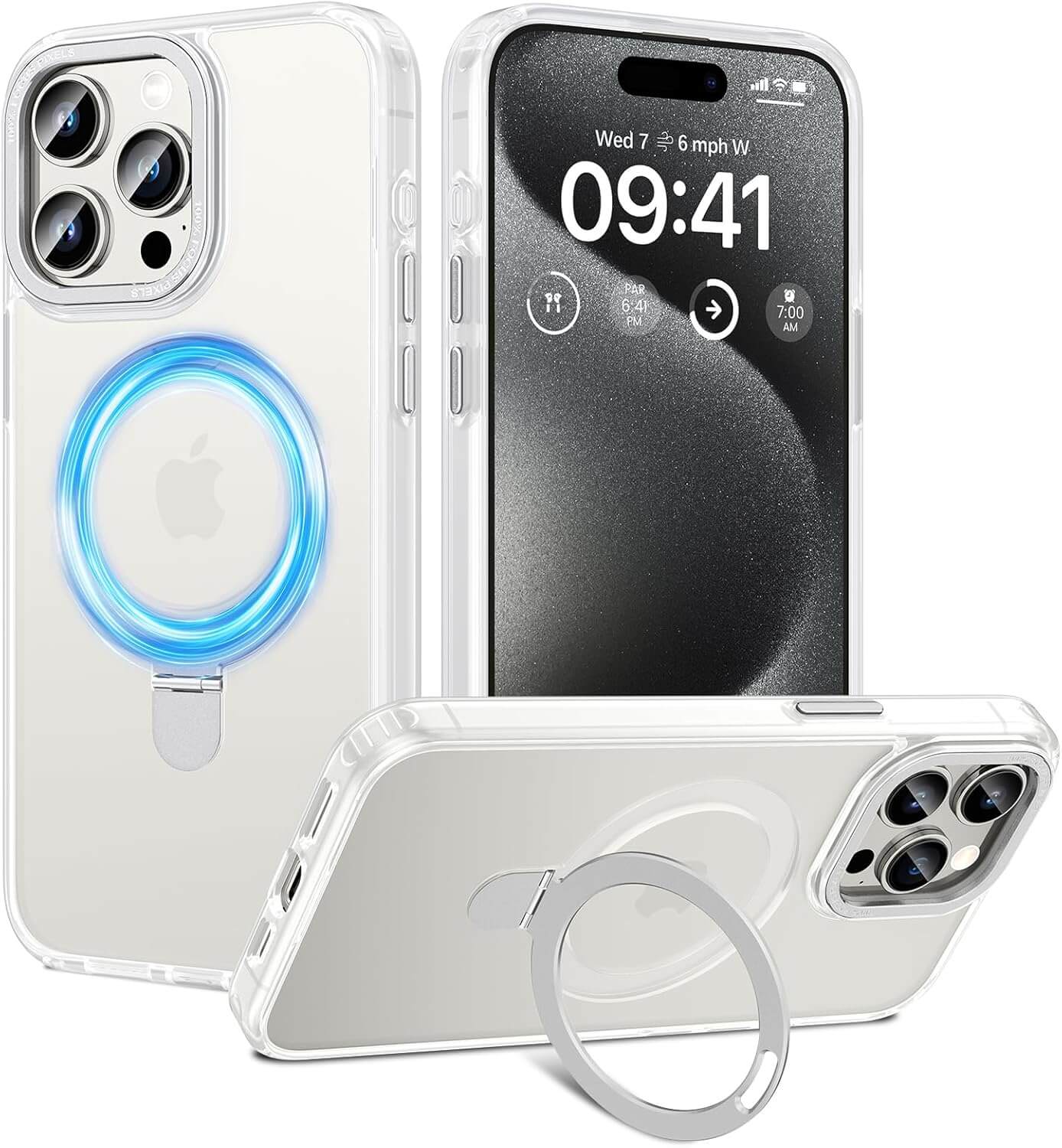 Ovitek vključuje tanko, a robustno kovinsko stojalo, ki je popolnoma skrito, ko ni v uporabi. Stojalo omogoča stabilno postavitev telefona v različnih kotih za pokončno ali ležečo uporabo – idealno za ogled filmov ali video klice brez uporabe rok.