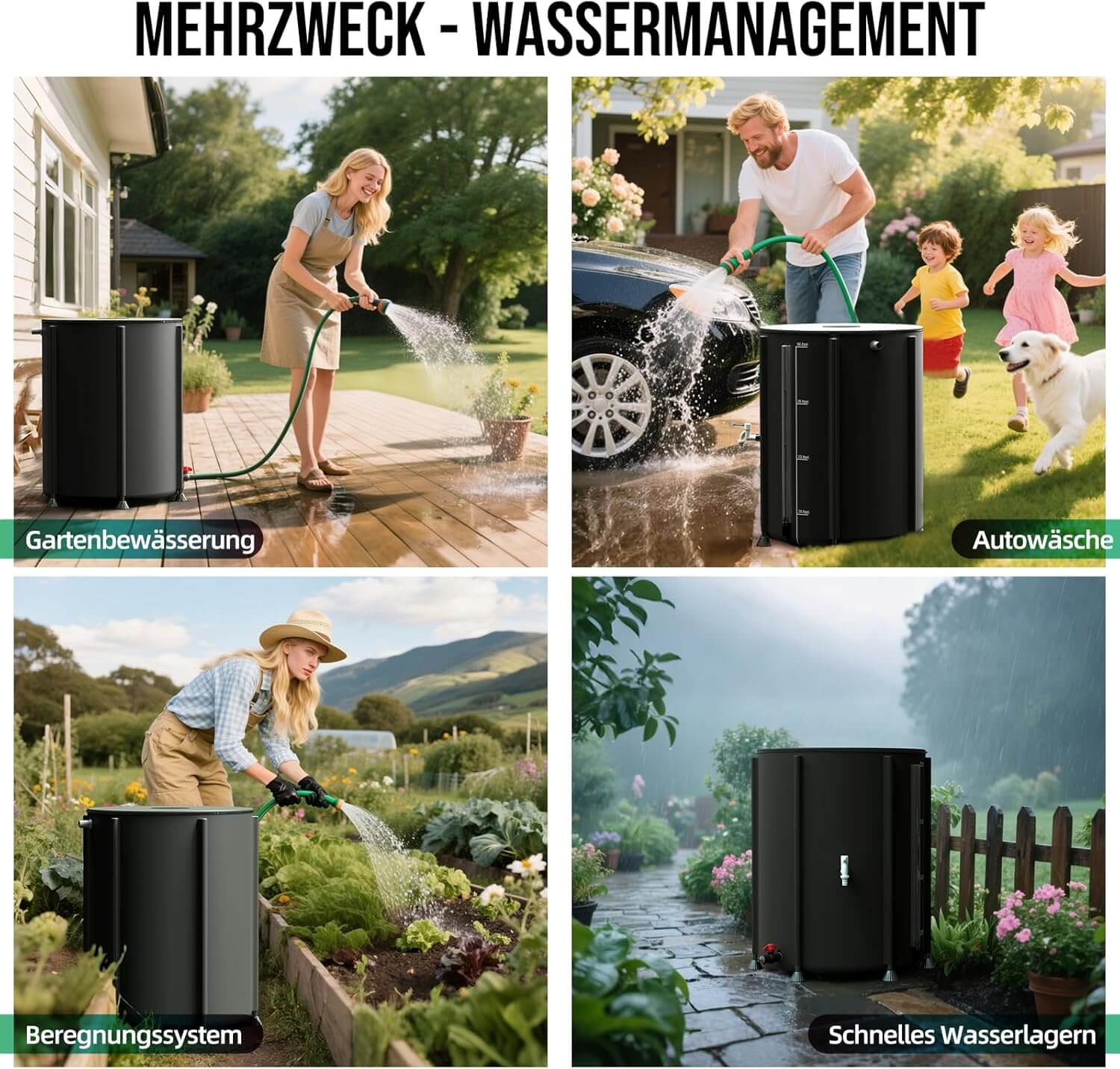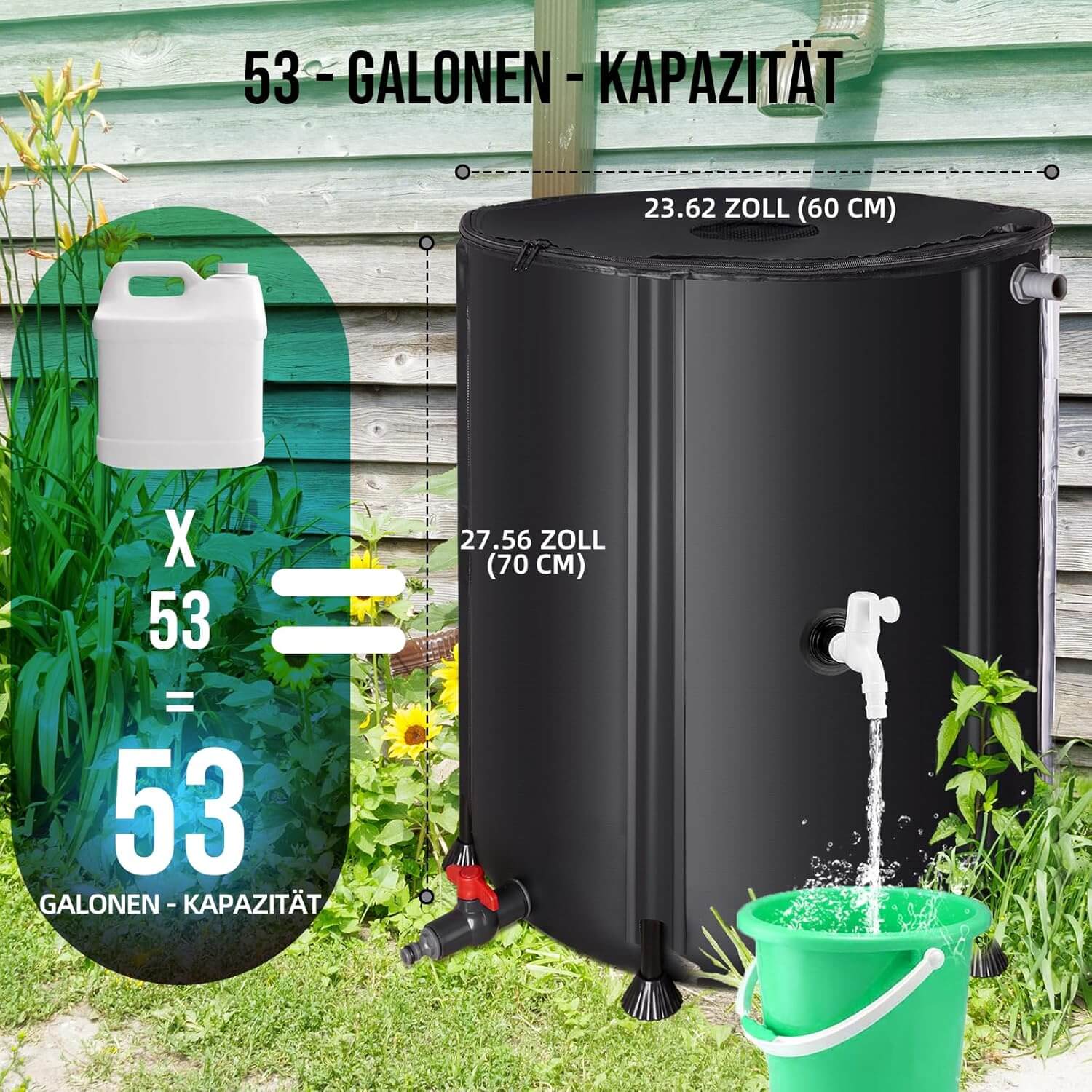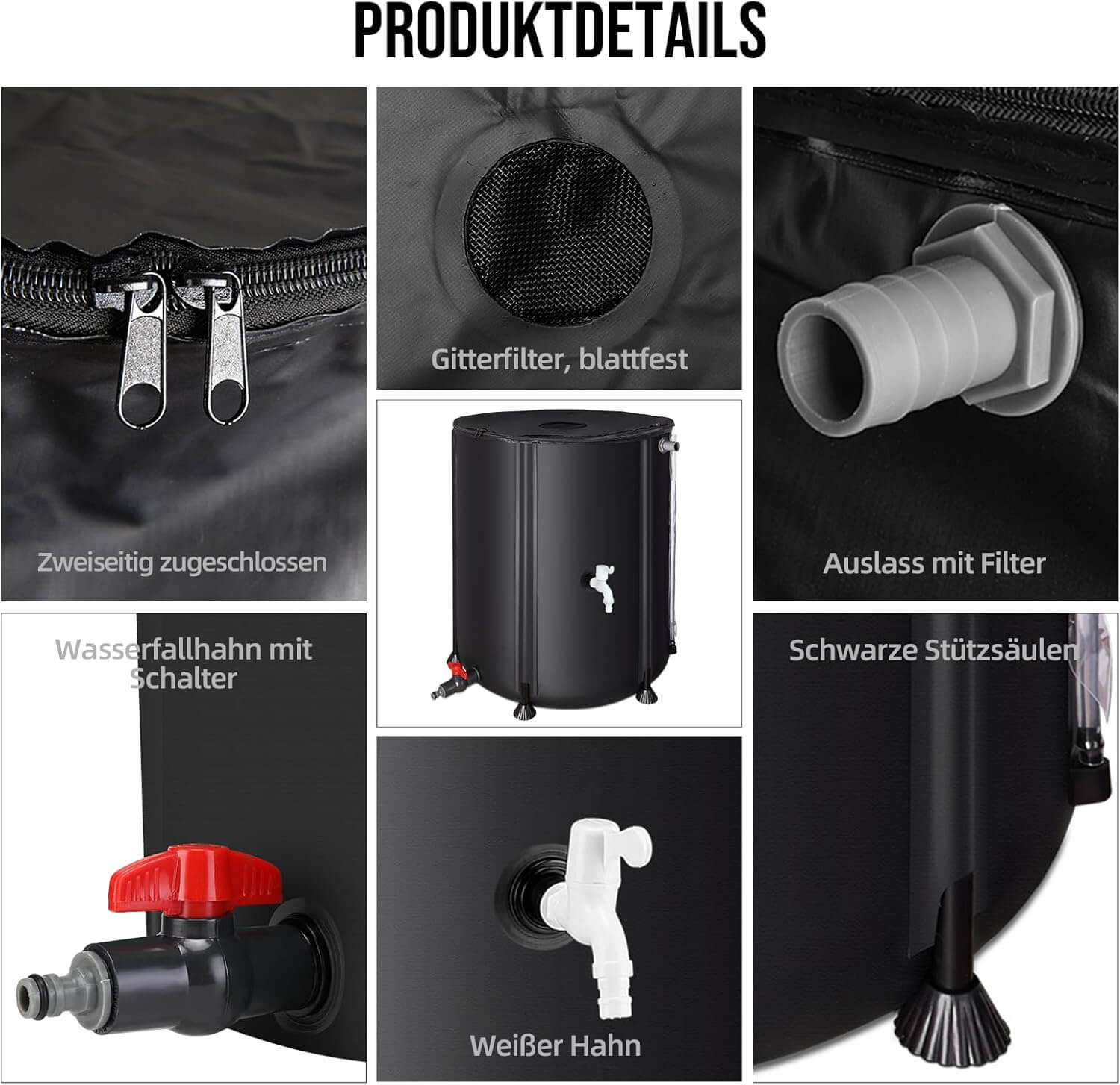 Vzdržljiv 200-litrski zbiralnik deževnice iz tripeplastnega PVC 500D materiala je zasnovan za celoletno uporabo na prostem. Ojačane steklene palice poskrbijo za stabilnost, dvojni pipi omogočata enostaven dostop do vode, vgrajena zaščita proti puščanju pa zagotavlja popolnoma tesno delovanje brez kapljanja. Idealna rešitev za vsak vrt, teraso ali manjšo shrambo, saj se po uporabi preprosto zloži in pospravi.
