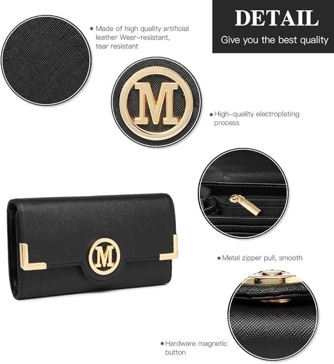Eleganten videz in kakovostna izdelava: vintage kovinski logotip “M” in vtisnjen napis “Miss Lulu” v notranjosti poudarjata eleganco in dovršenost dizajna.