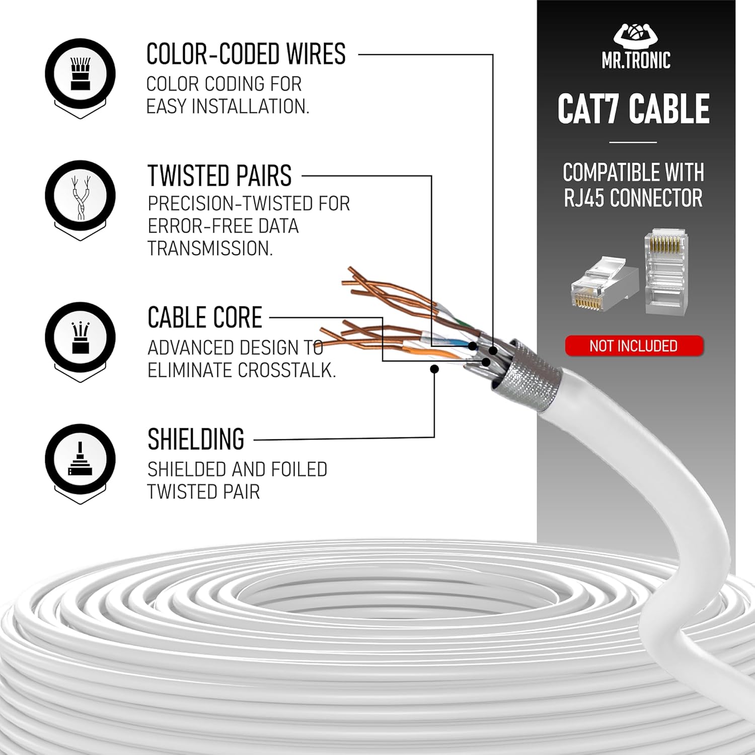 Ethernet kabel je profesionalni omrežni kabel, namenjen hitremu in stabilnemu prenosu podatkov v domačih ali pisarniških omrežjih. Izdelan je iz 100 % čistega bakra in opremljen s SFTP oklopom, ki zmanjšuje motnje ter zagotavlja zanesljivo delovanje tudi pri zahtevnih omrežnih aplikacijah. Primeren je za notranje napeljave in prilagodljive inštalacije po meri.