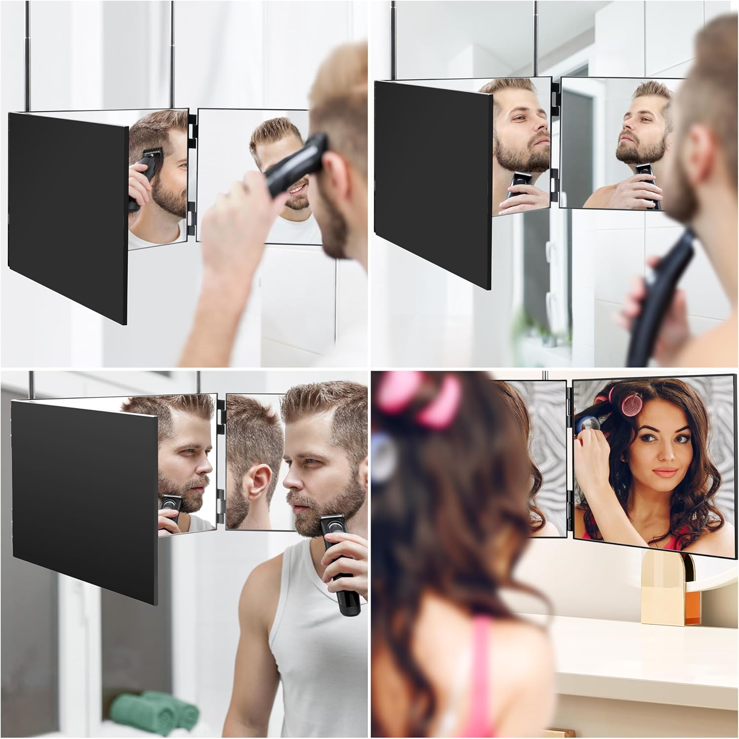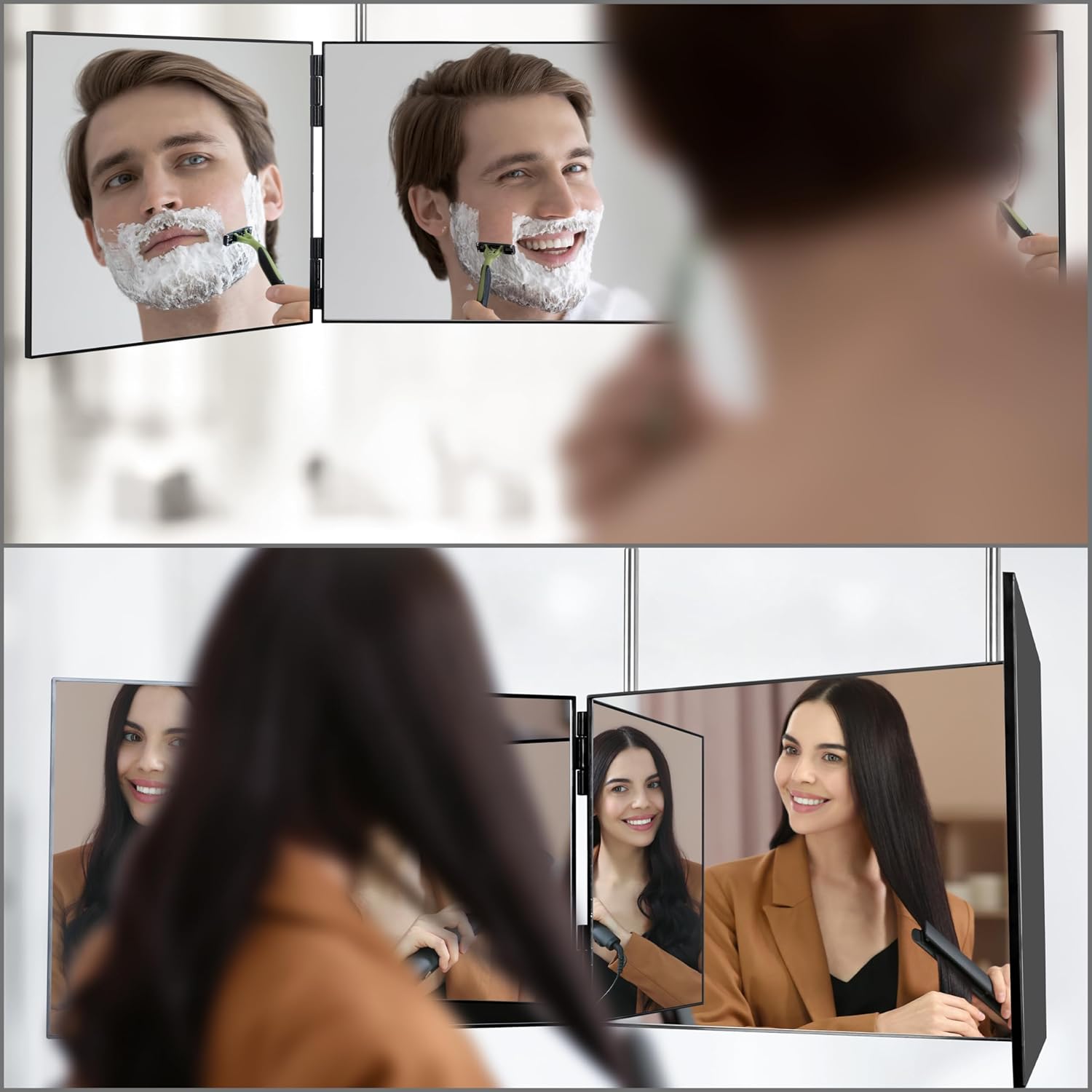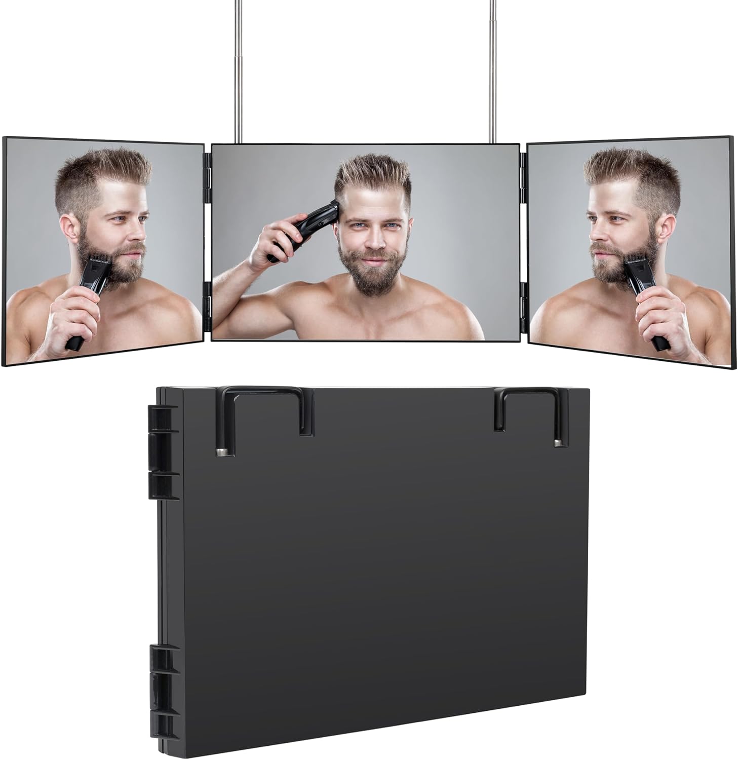 Tridelno zrcalo omogoča popoln pregled nad striženjem in urejanjem las brez napornega obračanja. Z jasnim pogledom iz vseh kotov bo vsaka pričeska natančna in brezhibna. Kompaktna zasnova z nastavljivimi kavlji omogoča uporabo doma ali na poti.