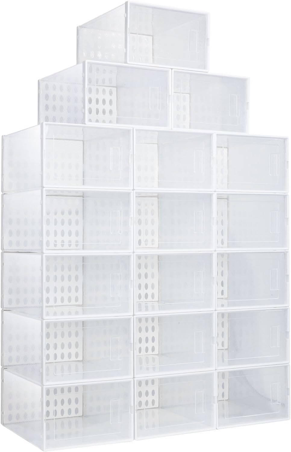 Kompakten in praktičen komplet 18 prozornih škatel za shranjevanje čevljev omogoča urejeno in pregledno organizacijo prostora. Škatle so izdelane iz nekoliko mehkejše plastike, kar zagotavlja prilagodljivost in lažje rokovanje. Idealne so za omare, hodnike ali garderobne sobe, kjer je pomembna kombinacija preglednosti in enostavnosti uporabe.