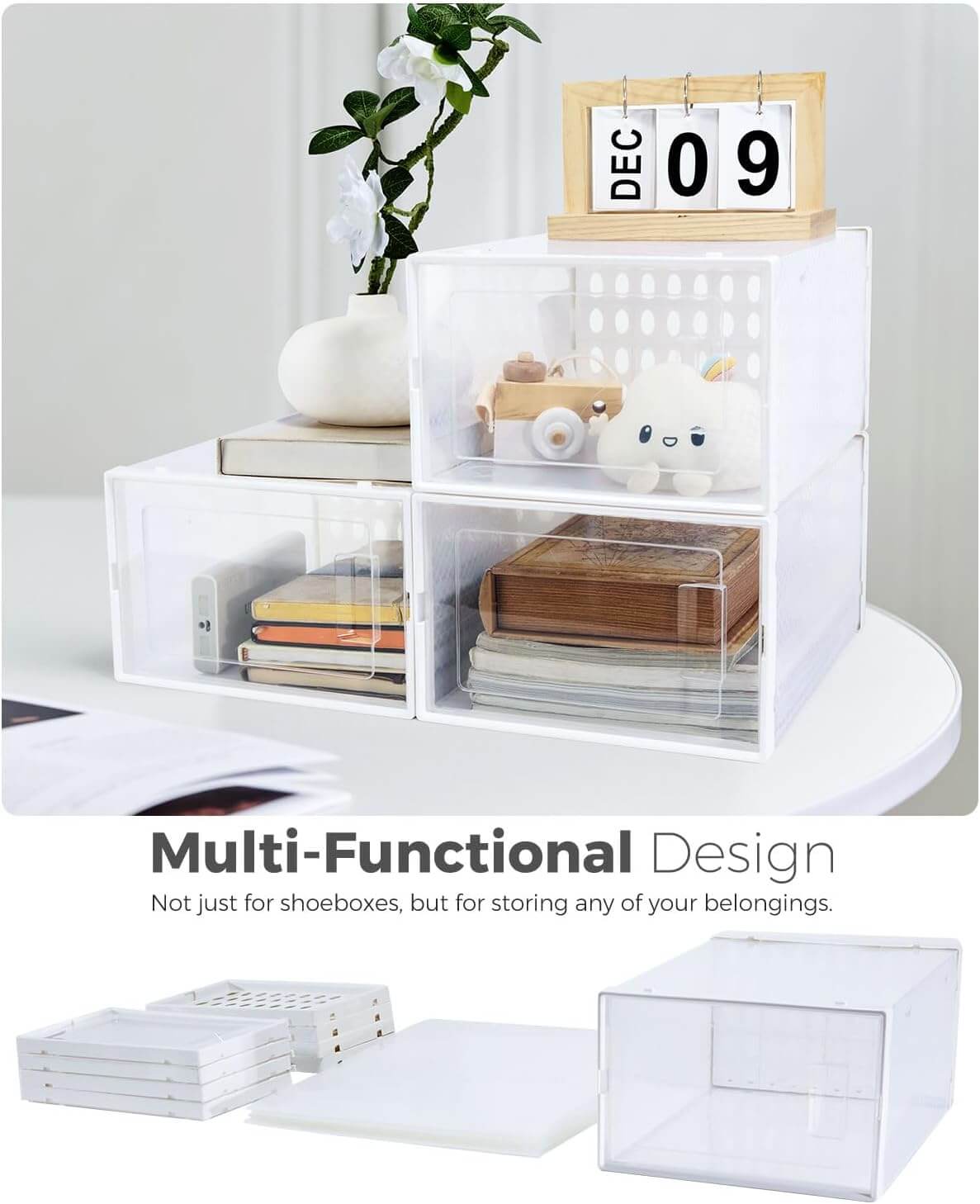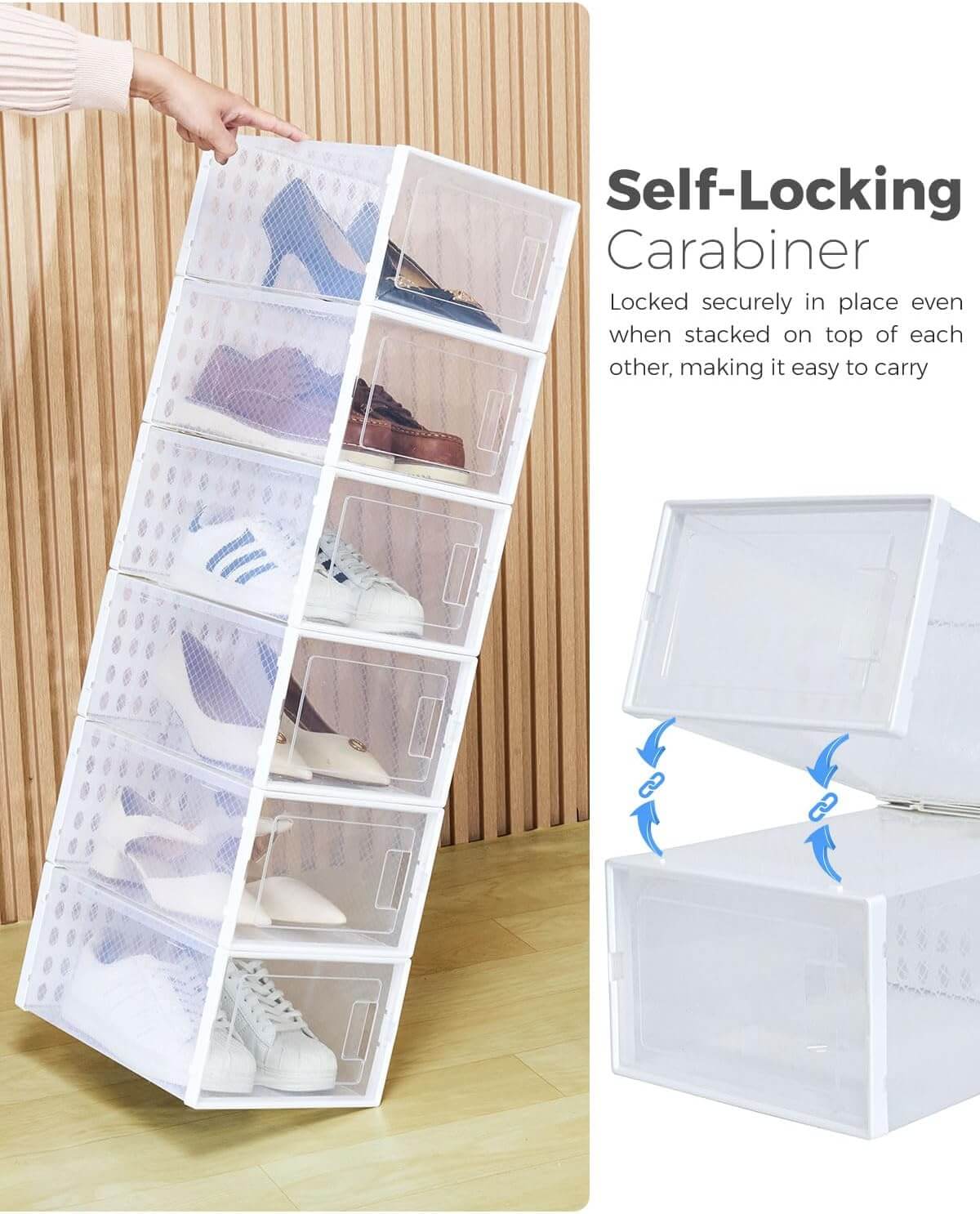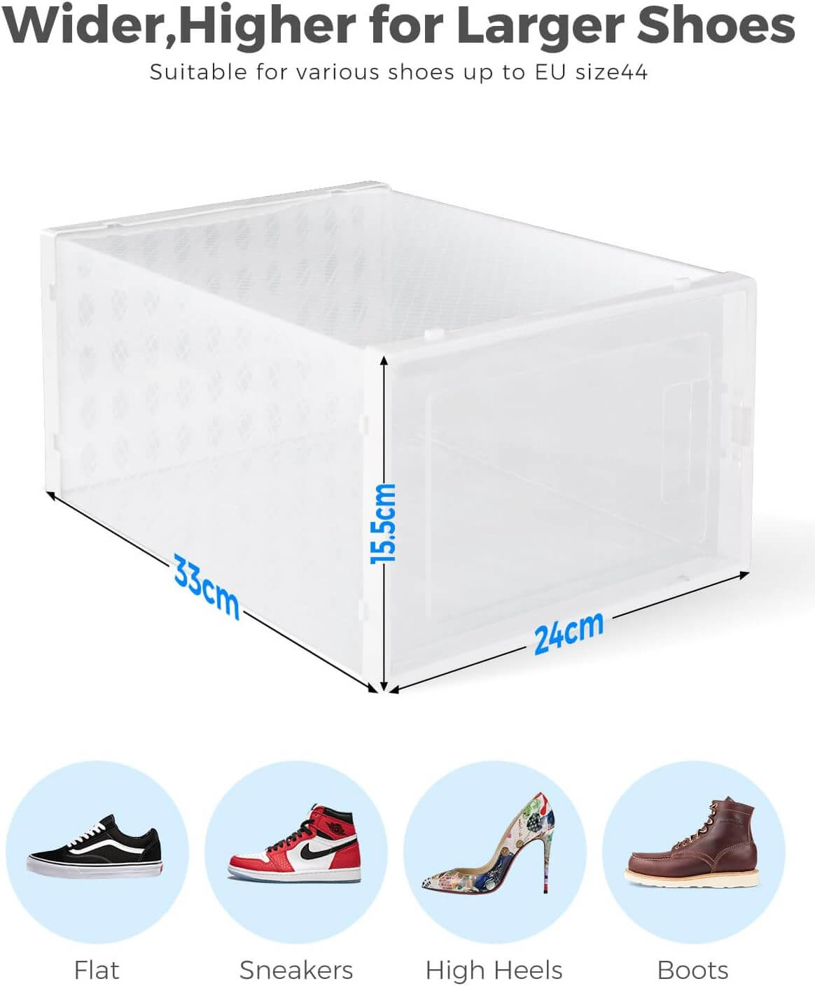 Velika kapaciteta: Vsaka škatla nudi dovolj prostora za različne tipe obutve – superge, salonarje, škornje ali sandale.