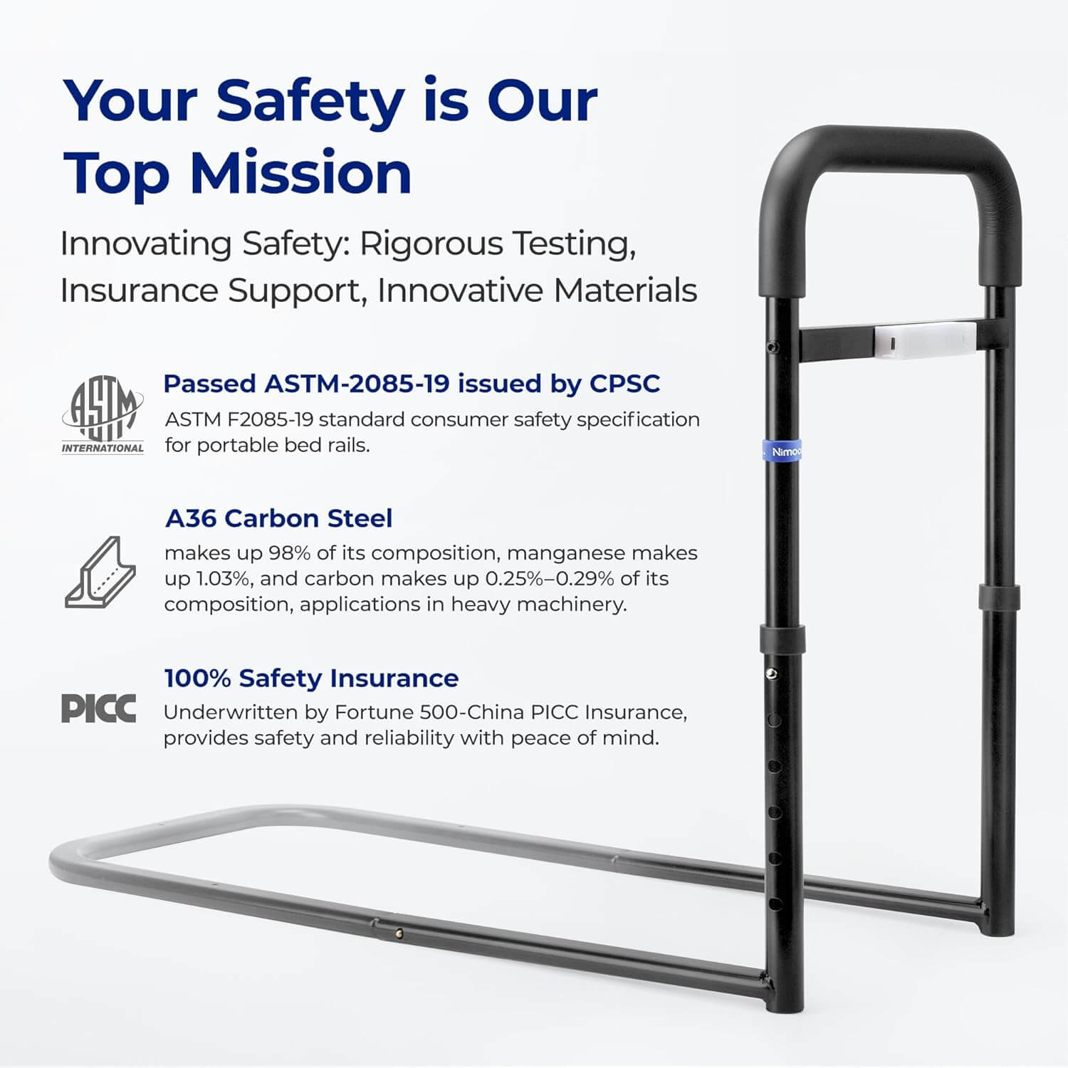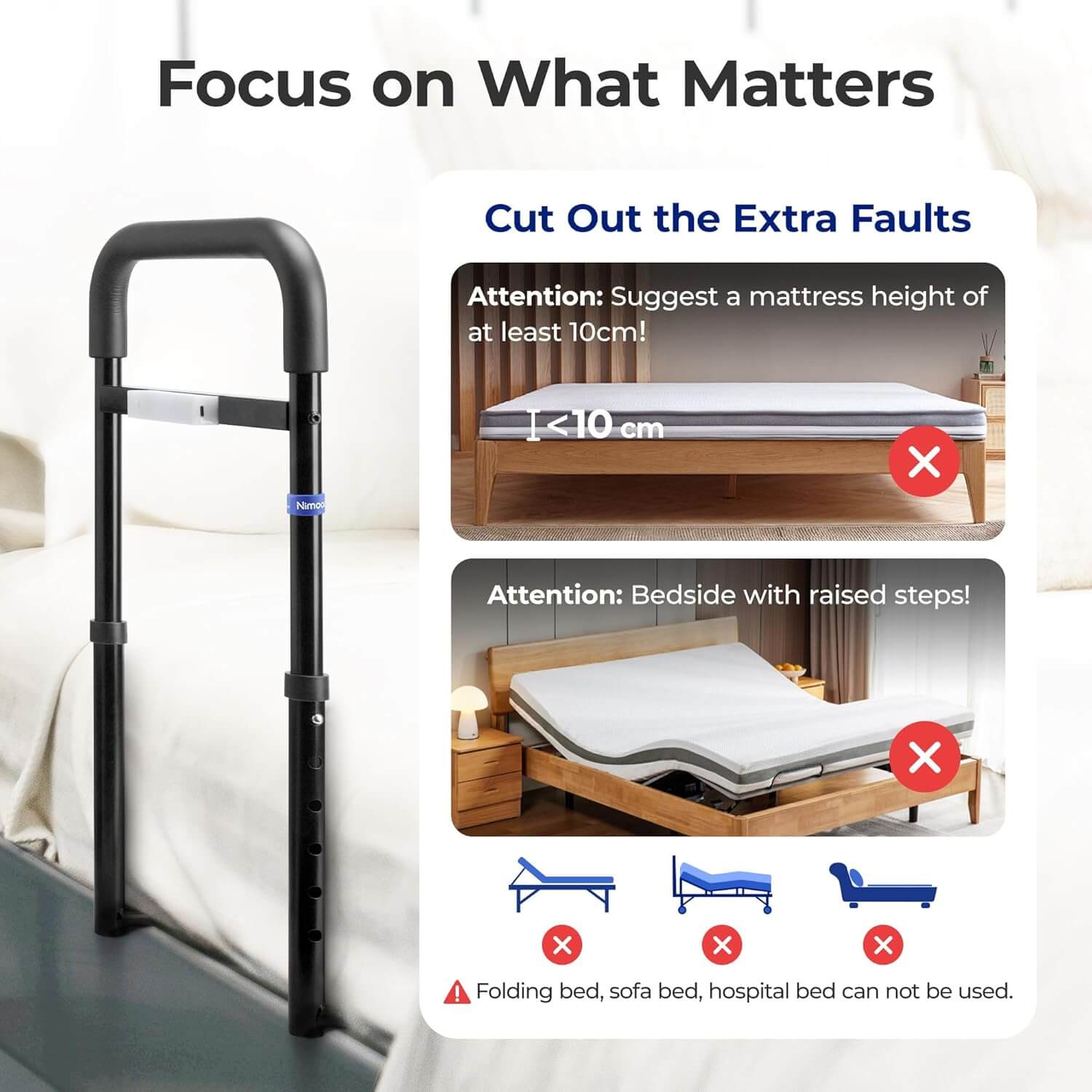 Nastavljiva višina za večino vrst postelj: višina 39,6–55,6 cm zagotavlja stabilnost na različnih debelinah vzmetnic. Primerna za single, twin, full, queen in king velikosti postelj (ni priporočljivo za tatami in nekatere nastavljive postelje).