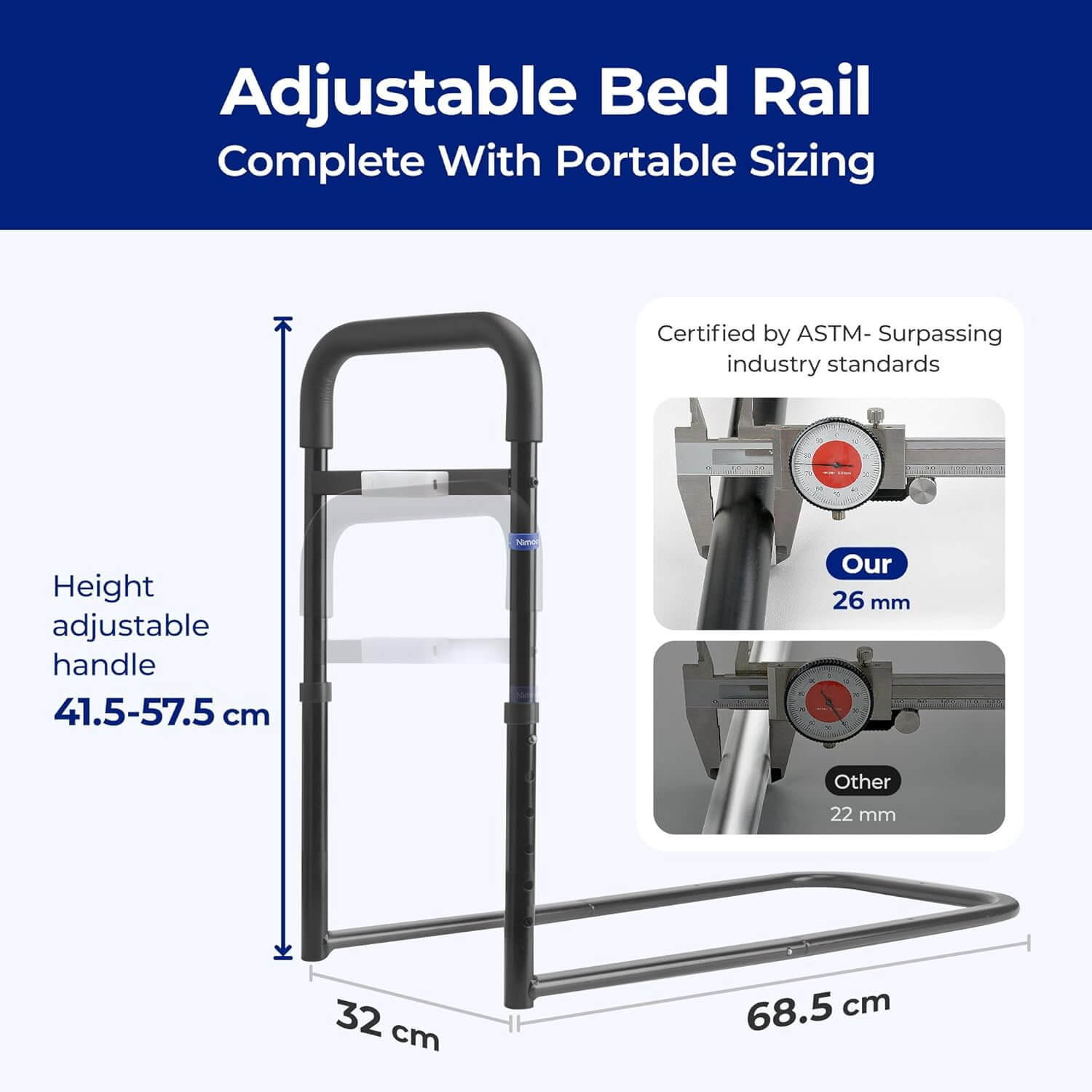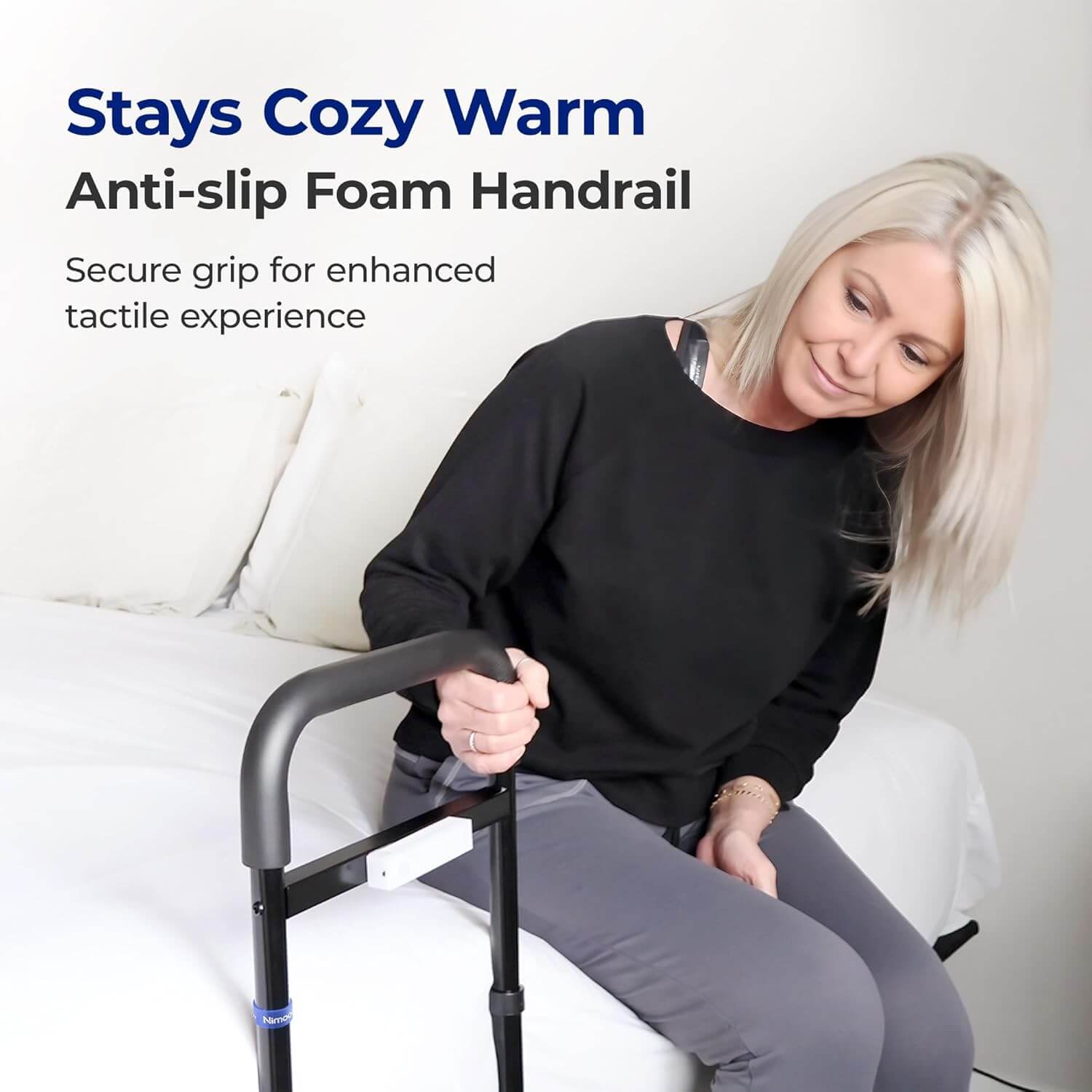 Zanesljiva opora pri vstajanju: kompaktna posteljna ograja omogoča samostojno sedenje in vstajanje ter s tem zmanjšuje možnost padcev in poškodb.