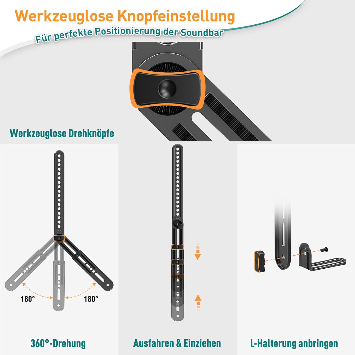 Univerzalni nosilec za soundbar omogoča pritrditev naprav do 6,8 kg. Združljiv je z večino TV nosilcev in zvočnikovvodilnih znamk. Namestitev je preprosta in poteka brez orodja.