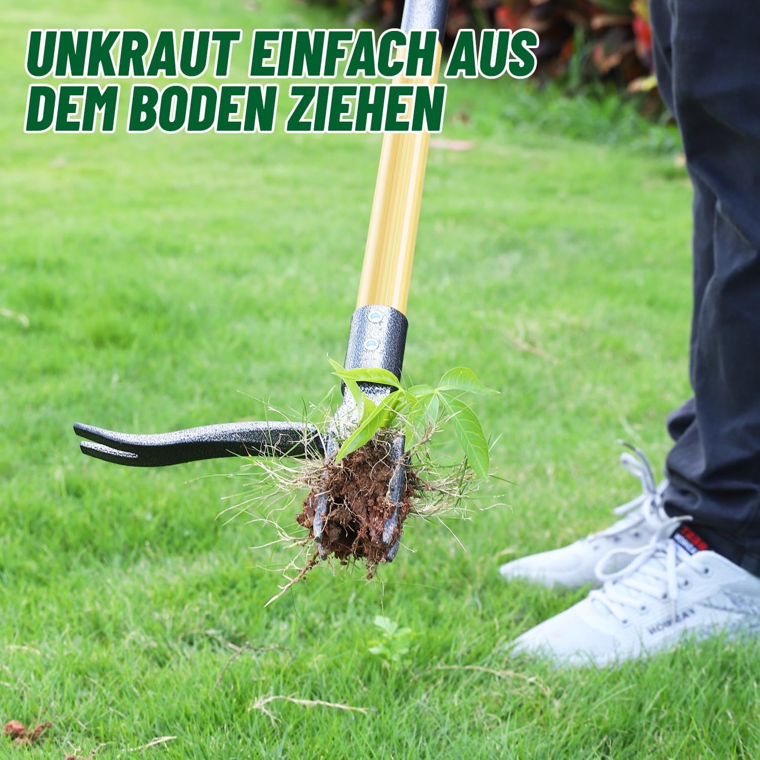 Ergonomska uporaba: Dolg bambusov ročaj omogoča odstranjevanje plevela brez naprezanja hrbta ali kolen.