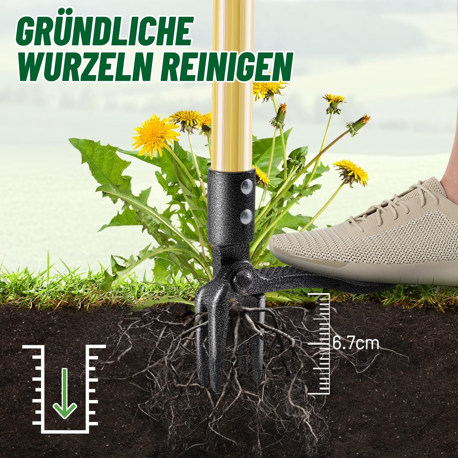 Učinkoviti kovinski kremplji: Štirje ostri kremplji zanesljivo zgrabijo in izpulijo plevel skupaj s koreninami.