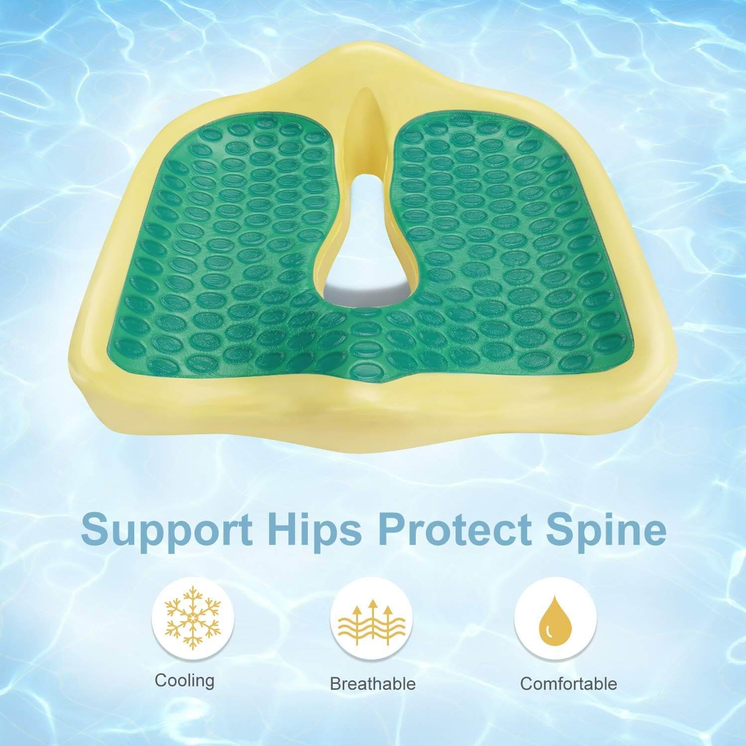 Posebna zasnova: Gel sedežna blazina enakomerno porazdeli telesno težo po celotni površini, kar zagotavlja udobno sedenje. Votlina na sredini preprečuje nabiranje bakterij in spodbuja kroženje zraka.