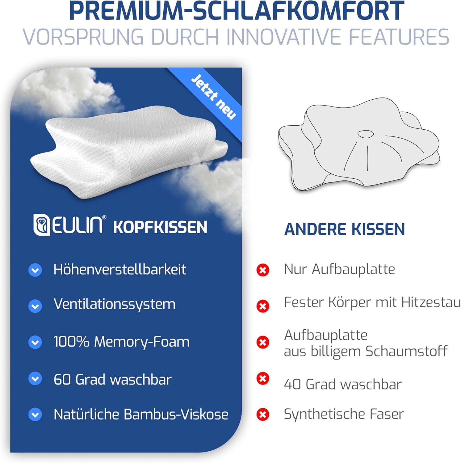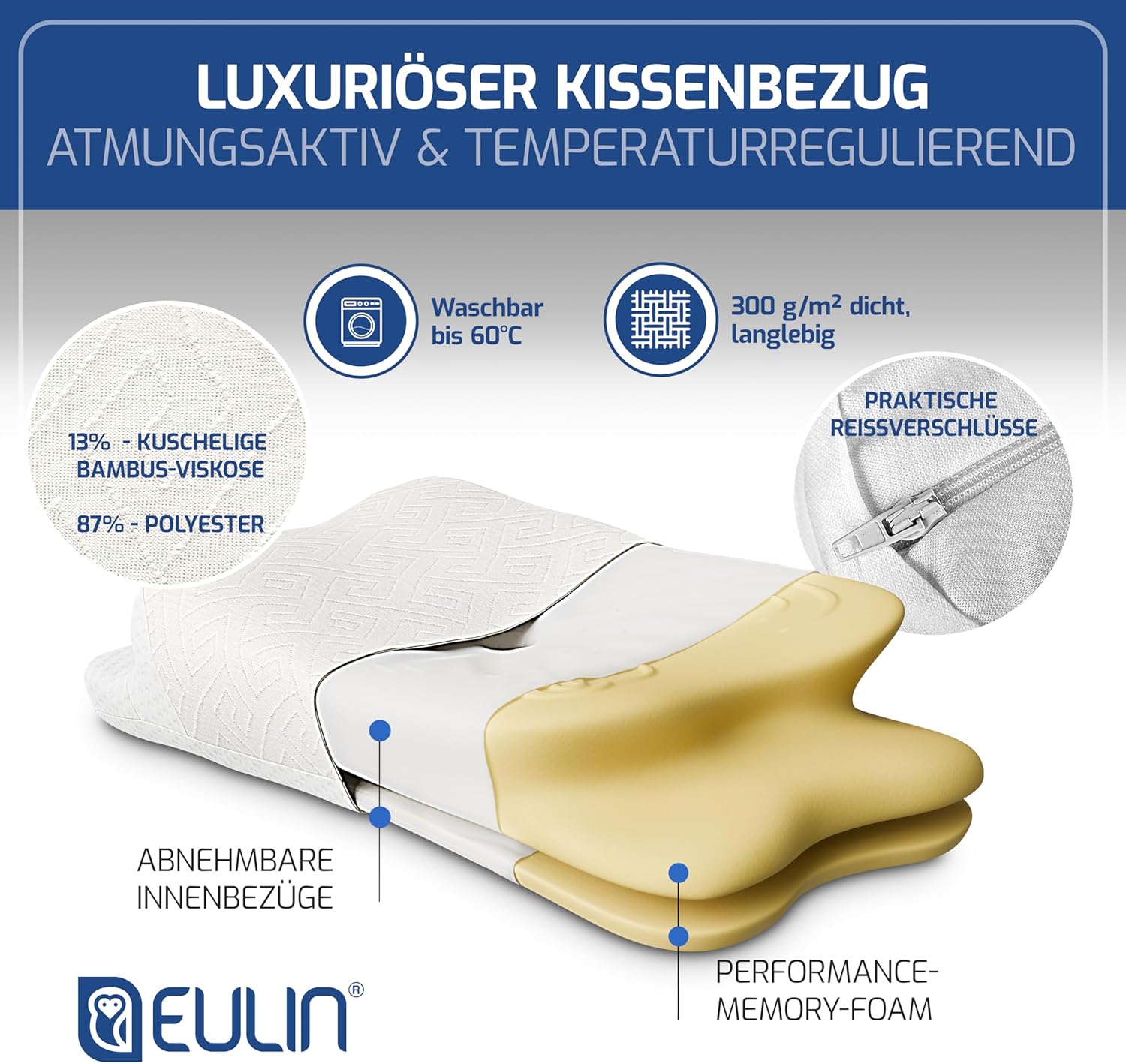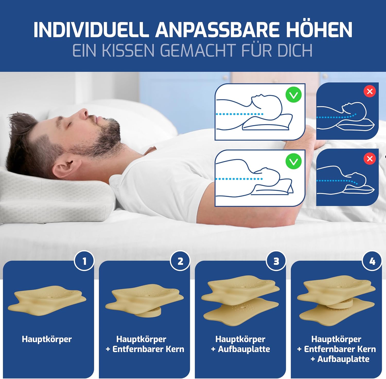 Ergonomski ortopedski vzglavnik s spominsko peno se prilagaja obliki glave in vratu. Nastavljiva višina in prezračevalni kanali omogočajo boljšo podporo, globlji spanec in manj bolečin v vratu ali ramenih. Prevleka iz bambusove viskoze je pralna in hipoalergena za sproščeno in čisto spanje.