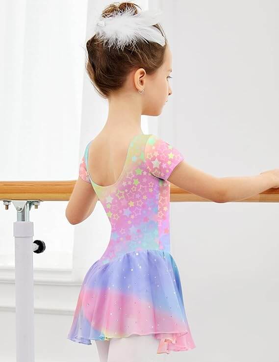 Untlet otroška baletna obleka združuje udobje, stil in praktičnost. S klasično zasnovo, mehkimi materiali in elegantnim šifonskim krilom je popolna izbira za plesne nastope, treninge ali posebne priložnosti.