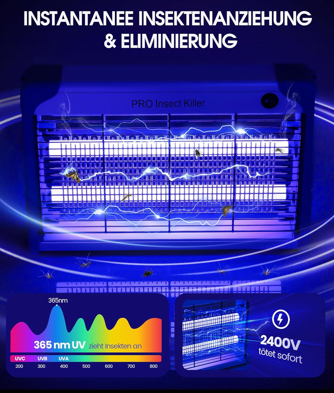 Takojšnja učinkovitost: UV svetloba s 365 nm valovno dolžino privablja žuželke, električni tok pa jih odstrani v trenutku.