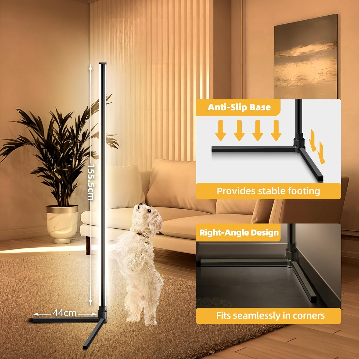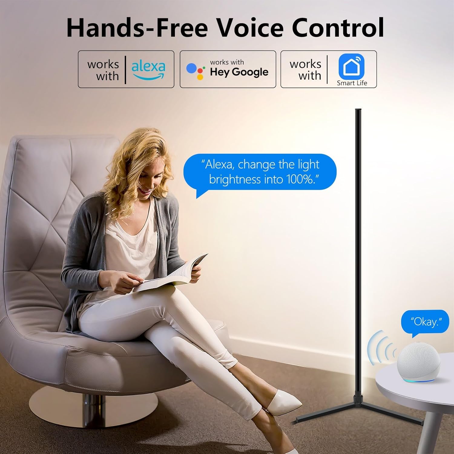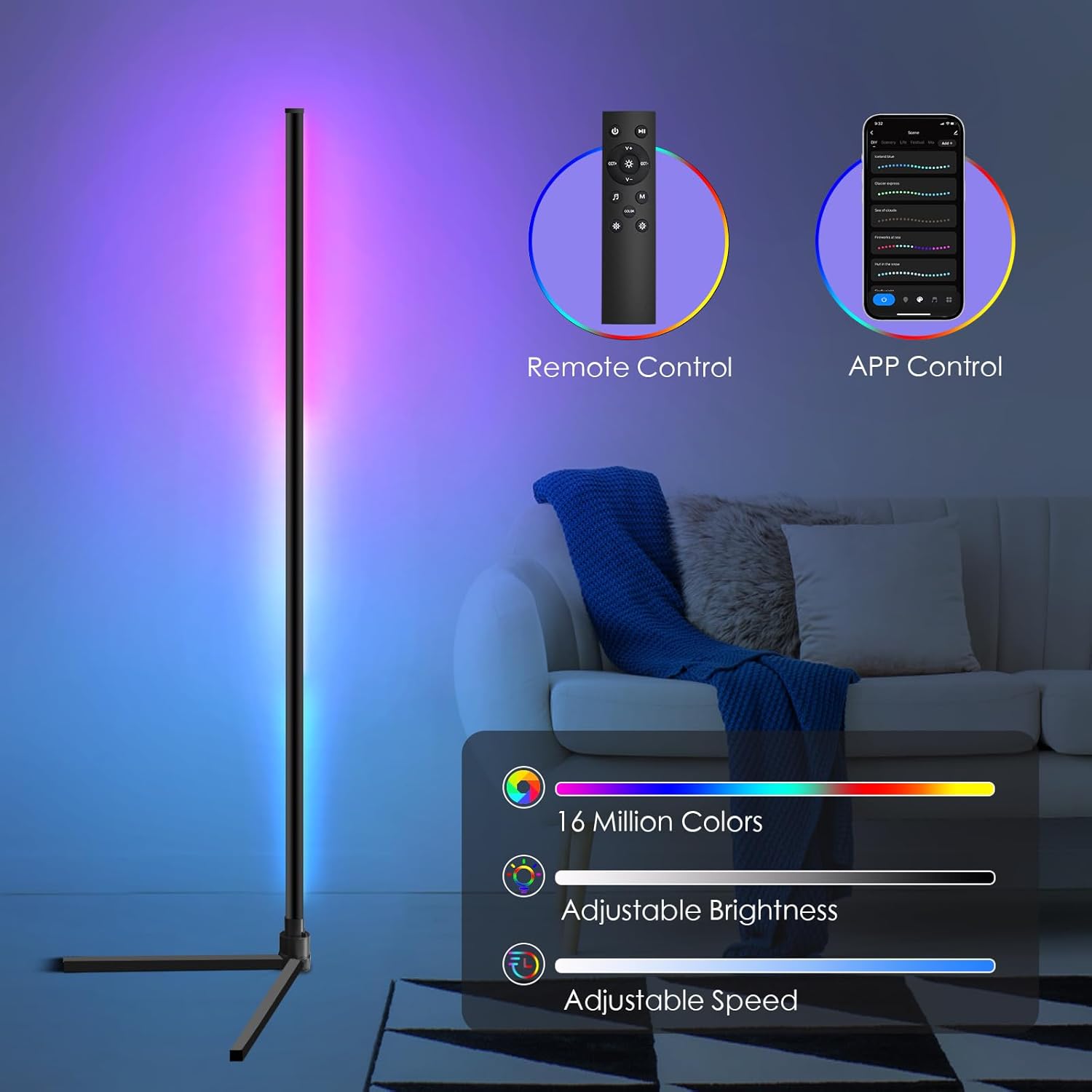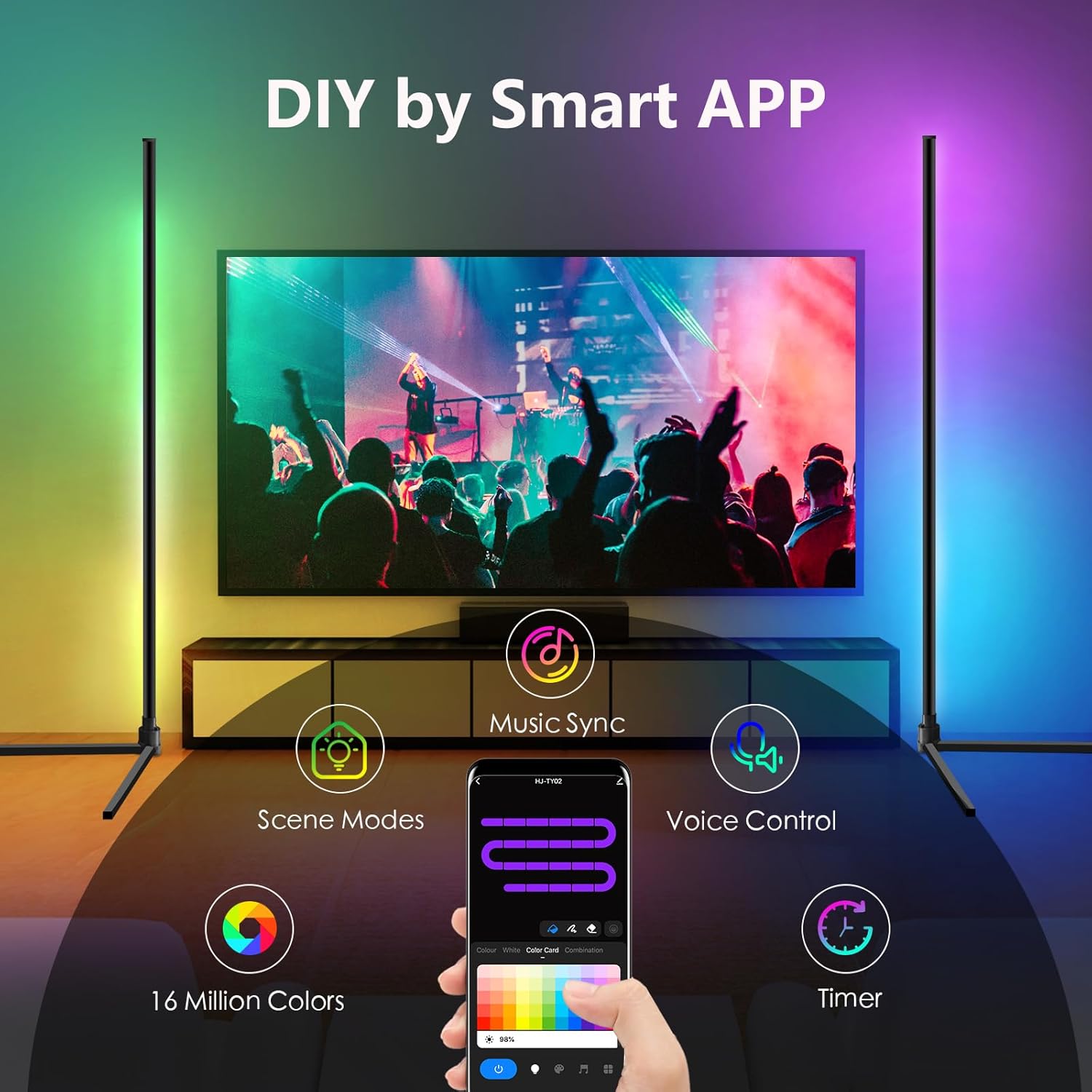 Moderna svetilka z barvno osvetlitvijo in pametnim upravljanjem za dnevne sobe, spalnice ali igralne kotičke. Svetilka ponuja 16 milijonov barv in možnost nastavitve barvne temperature od 2700 K do 6500 K. Upravljanje je enostavno prek aplikacije Tuya, daljinca ali z glasovnimi ukazi (Alexa, Google Assistant). Vgrajeni mikrofon omogoča sinhronizacijo svetlobe z glasbo, kar ustvarja posebno vzdušje.