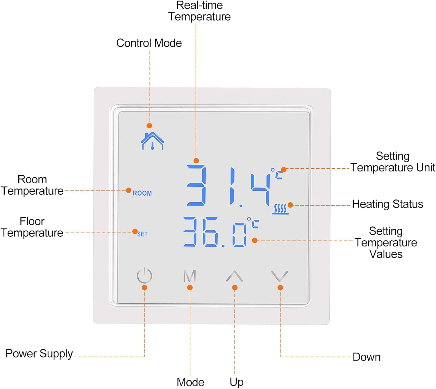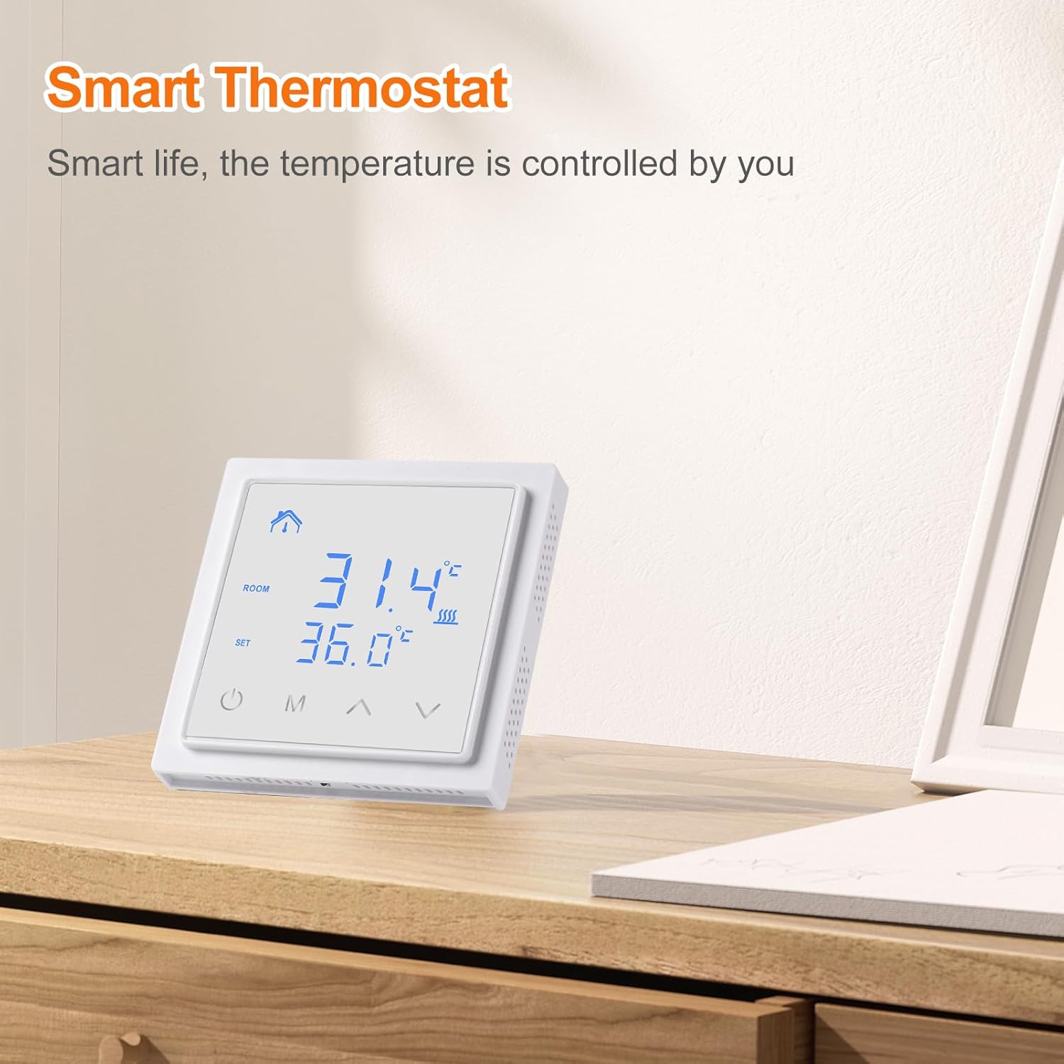 Pametni termostat omogoča natančen nadzor temperature s pomočjo notranjega in zunanjega senzorja. Velik LED zaslon na dotik zagotavlja enostavno upravljanje in jasno vidnost nastavitev. Napreden nadzor ogrevanja prispeva k večjemu udobju in energijski učinkovitosti.