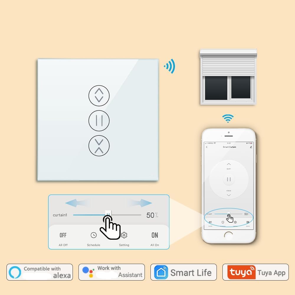 Pametno stikalo omogoča daljinsko upravljanje rolet preko aplikacije SmartLife na telefonu. Z glasovnimi ukazi ga lahko povežete z Alexa, Google Assistant in drugimi pomočniki. V aplikaciji nastavite časovnike za samodejno odpiranje ali zapiranje, da se rolete prilagodijo vašemu urniku.