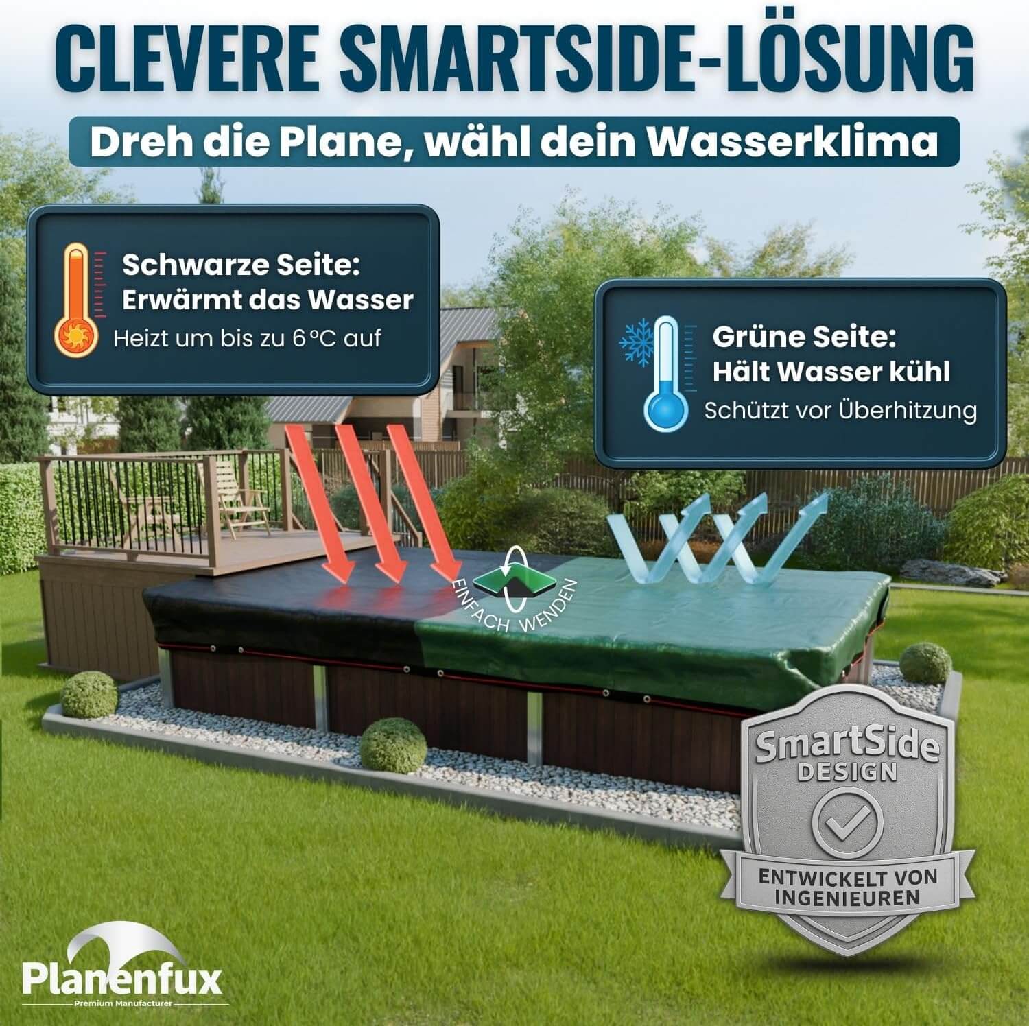 Enostavna uporaba: hitro in varno nameščanje zahvaljujoč napenjalnemu sistemu. Idealna za celoletno uporabo – poleti kot solarna folija, pozimi kot zaščitna pokrivka.