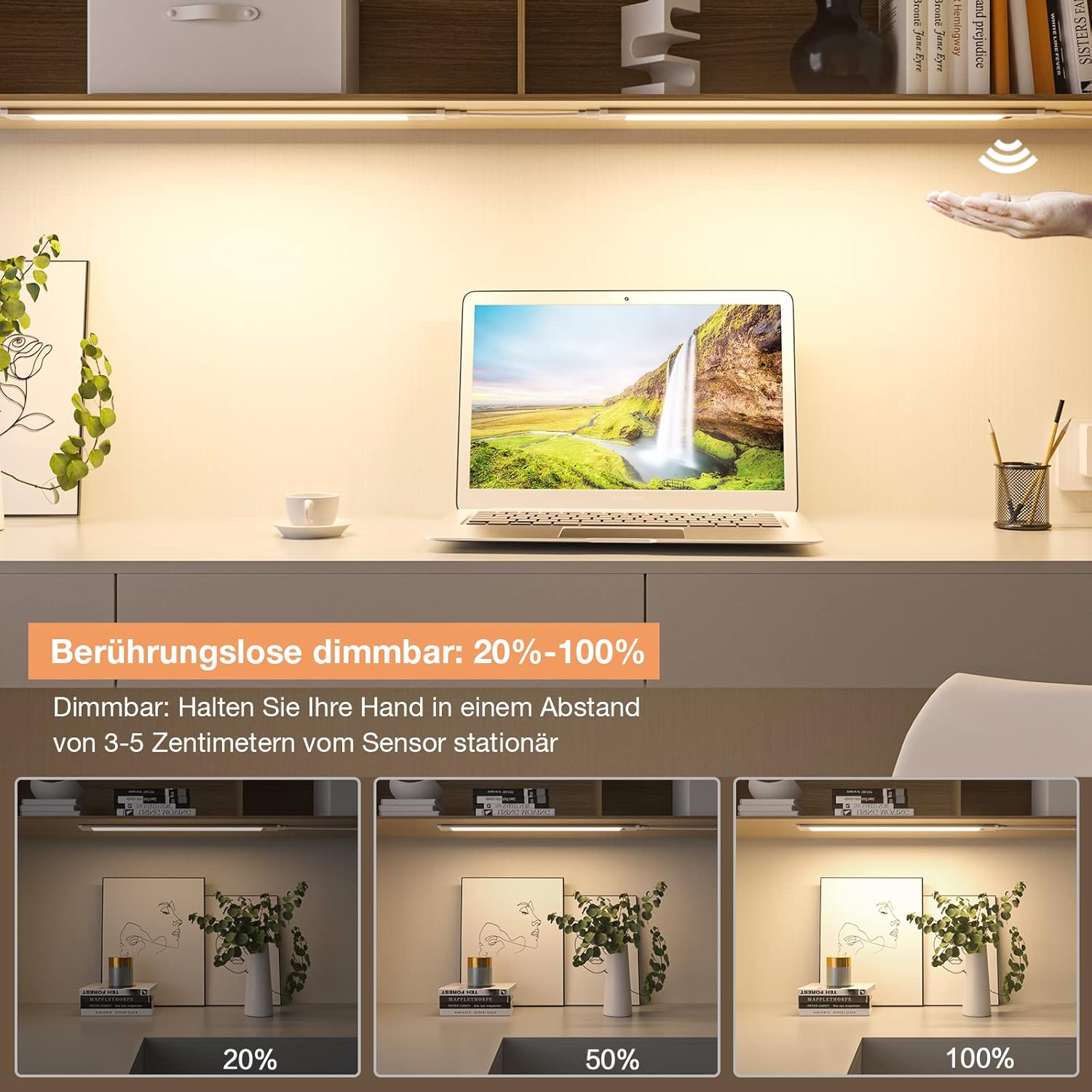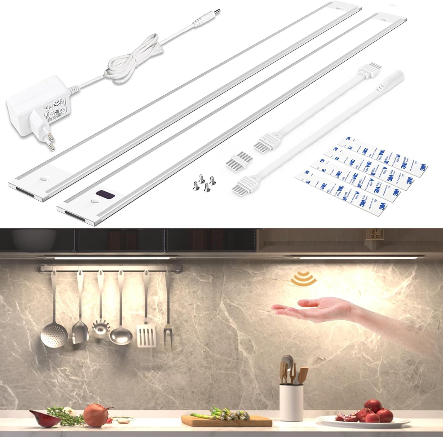Tanka LED svetilka z dimmer funkcijo omogoča upravljanje z zamahom roke brez dotika, kar je idealno za kuhinjo ali delovno površino. S svojo mehko in enakomerno svetlobo 4000 K ne povzroča bleščanja in preprečuje utrujenost oči. Zahvaljujoč enostavni montaži z lepilnim trakom je primerna za različno pohištvo in kotičke brez potrebe po vrtanju.
