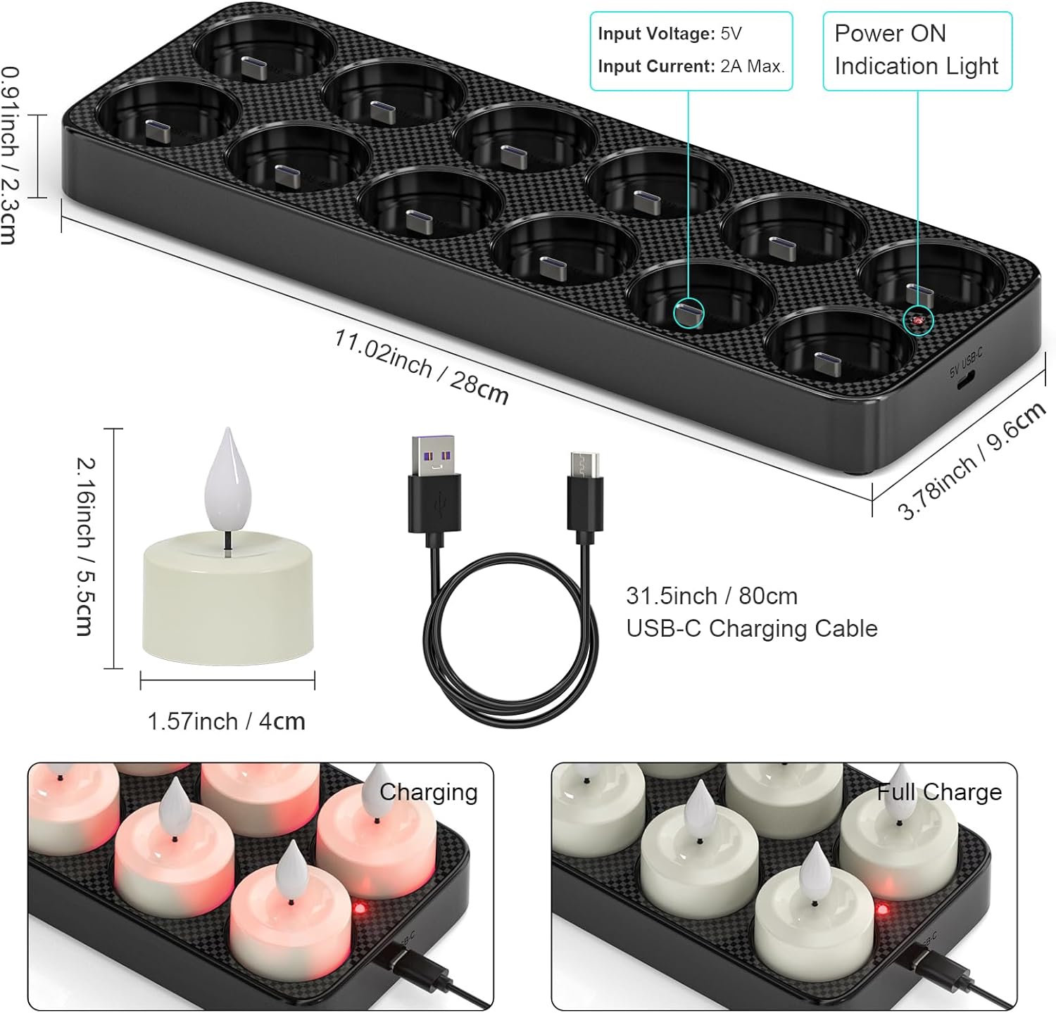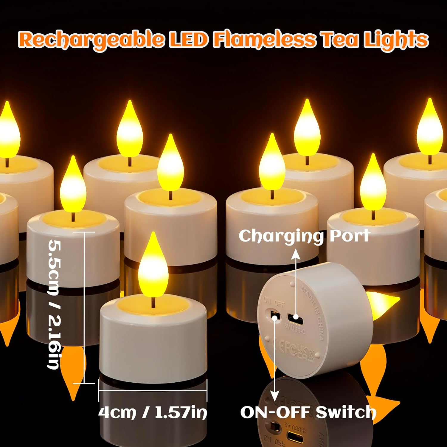 Polnilne LED svečke z do 42 urami svetlobe na eno polnjenje ponujajo prijetno svetlobo brez baterij. Daljinsko upravljanje omogoča vklop, izklop, nastavitev utripanja, svetlosti in časovnika. Utripajoča svetloba posnema pristen plamen, kar ustvari toplo in sproščeno vzdušje.