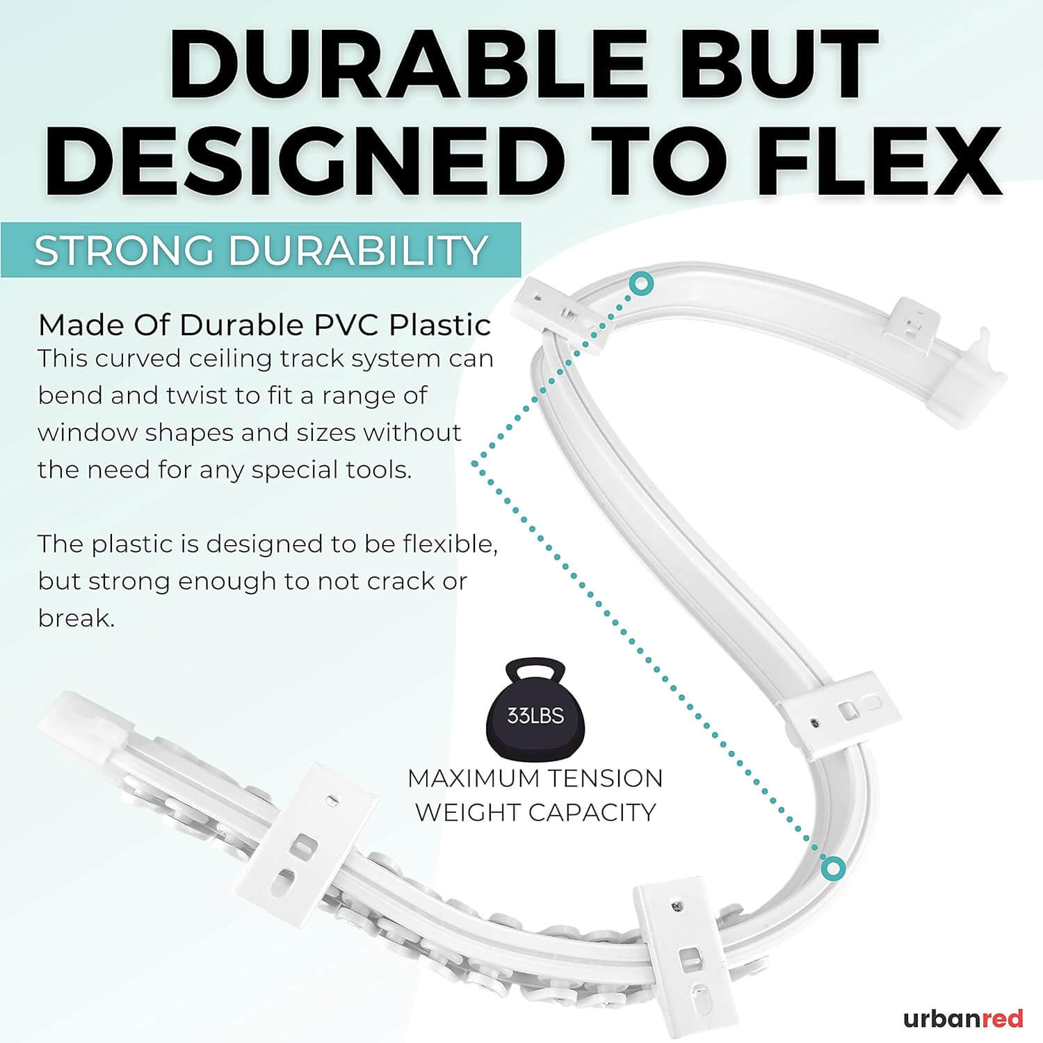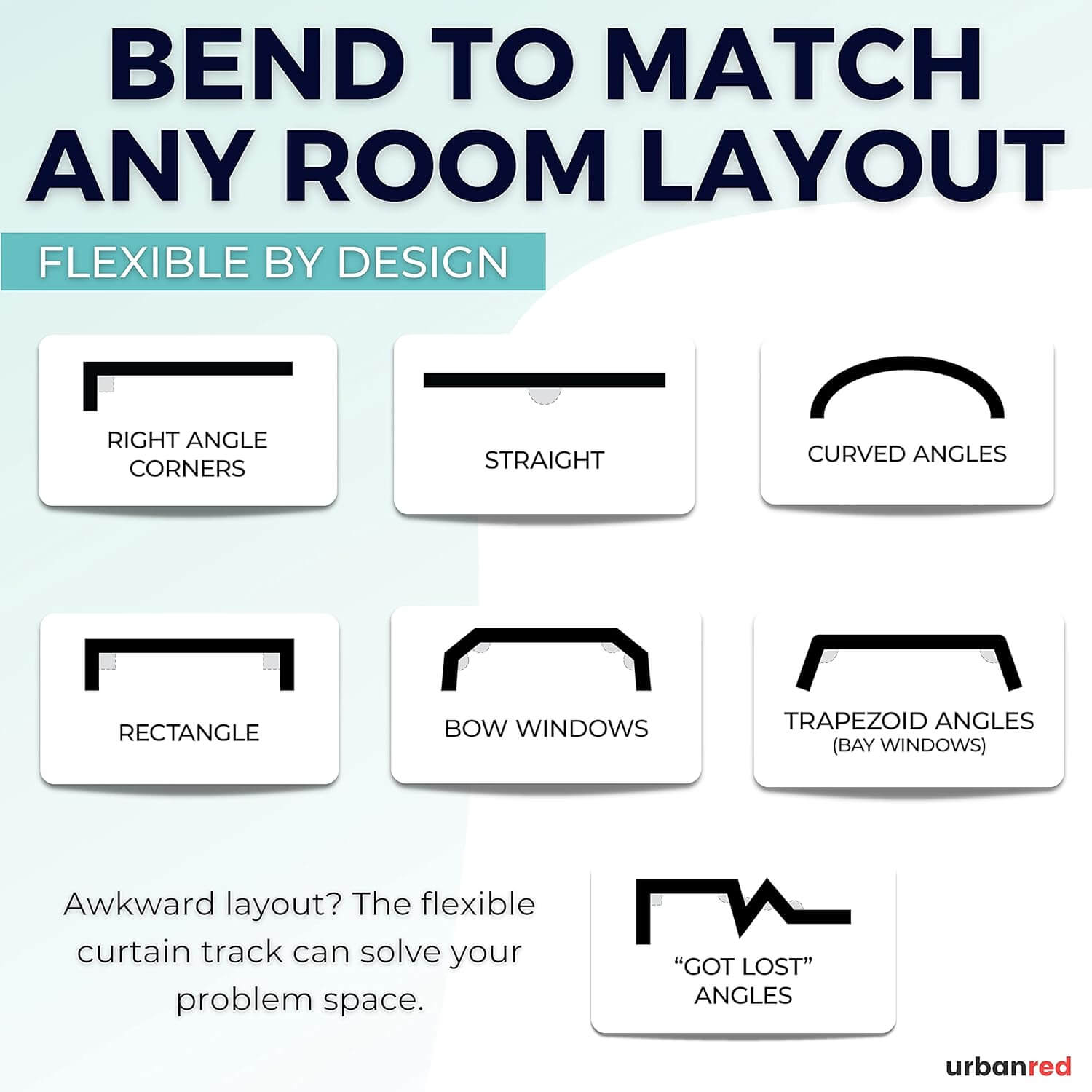 UrbanRed stropna tirnica omogoča prilagodljivo razporeditev zaves, pregraditev prostorov in ustvarjanje edinstvenih postavitev. Je estetska in funkcionalna rešitev za dom, pisarno ali počitniške prikolice.