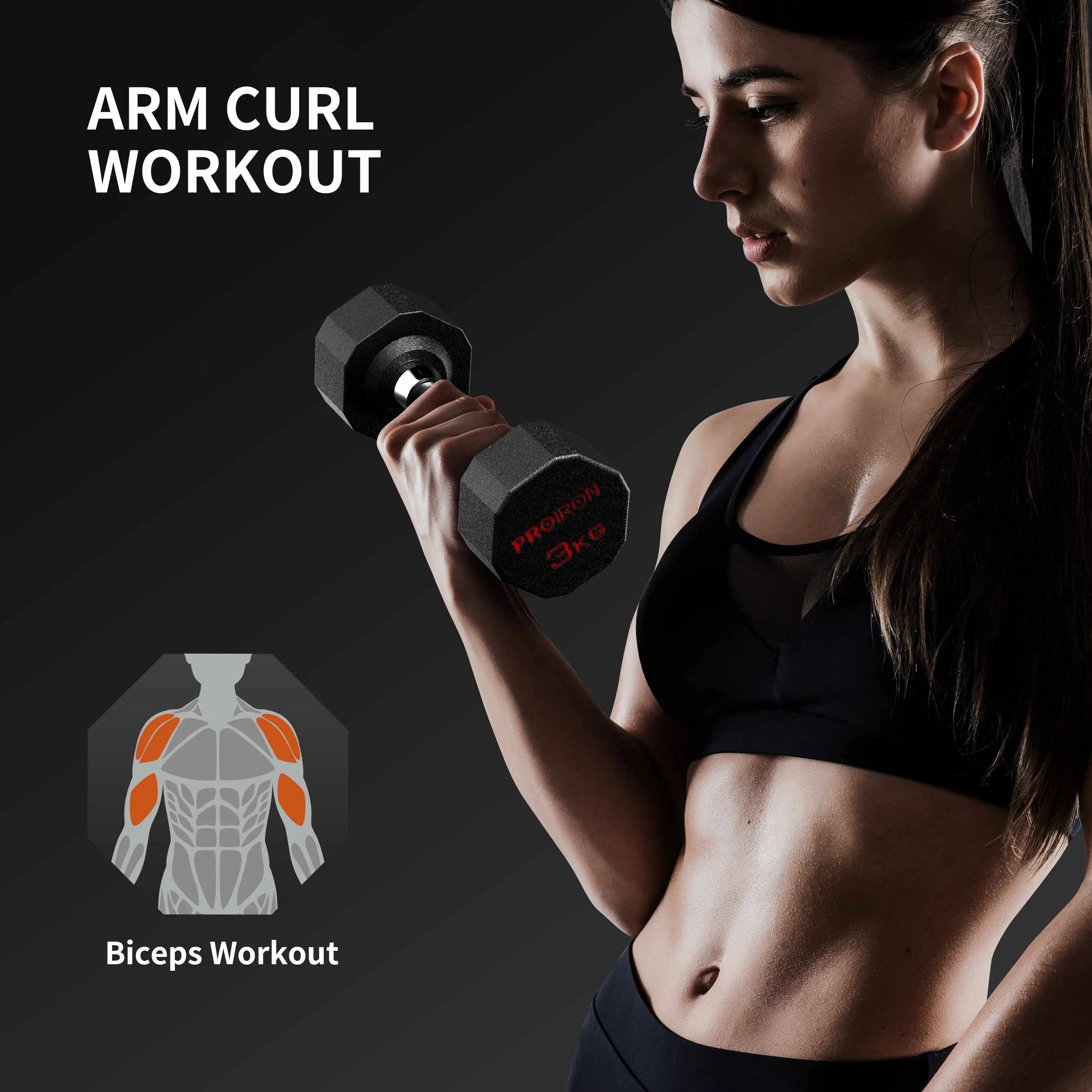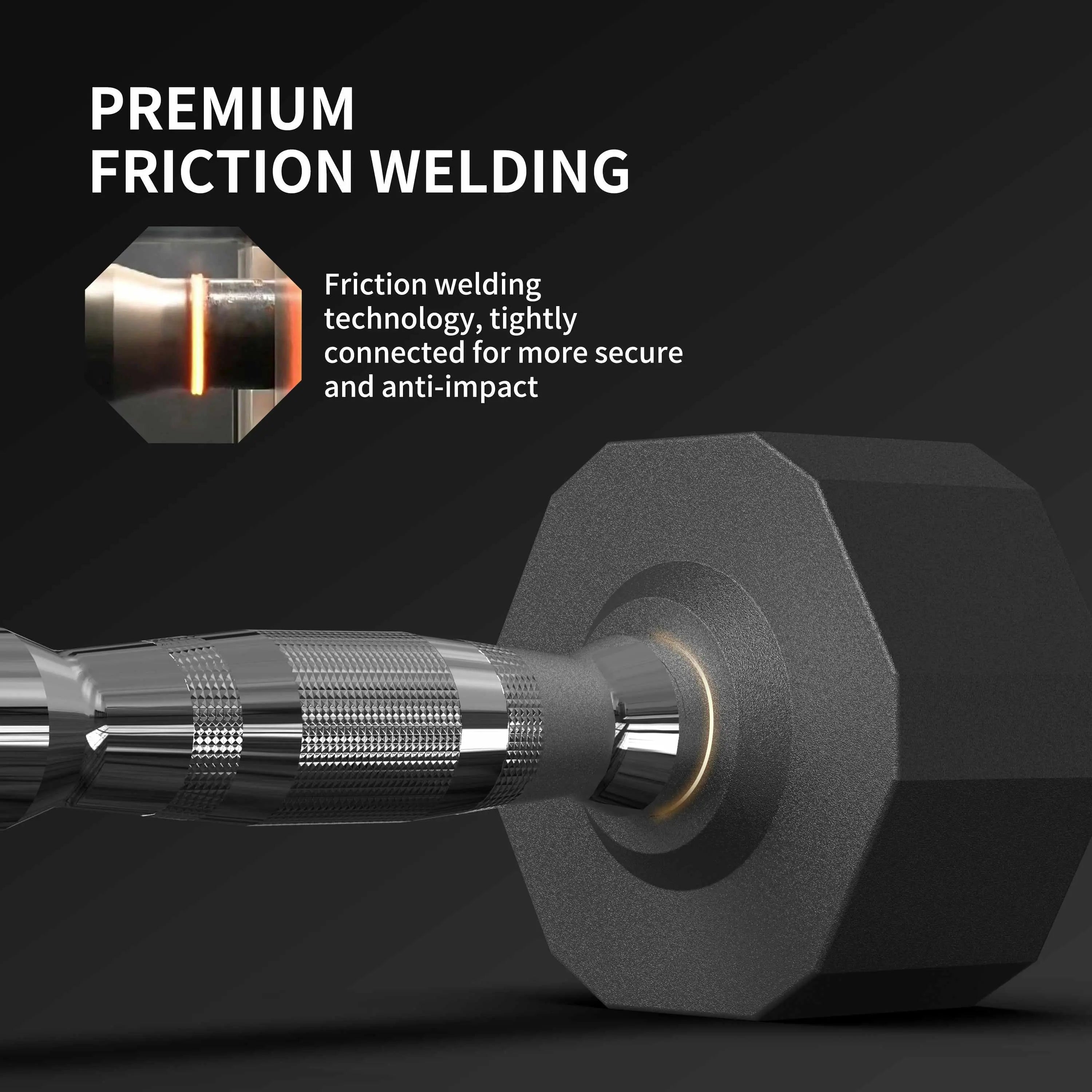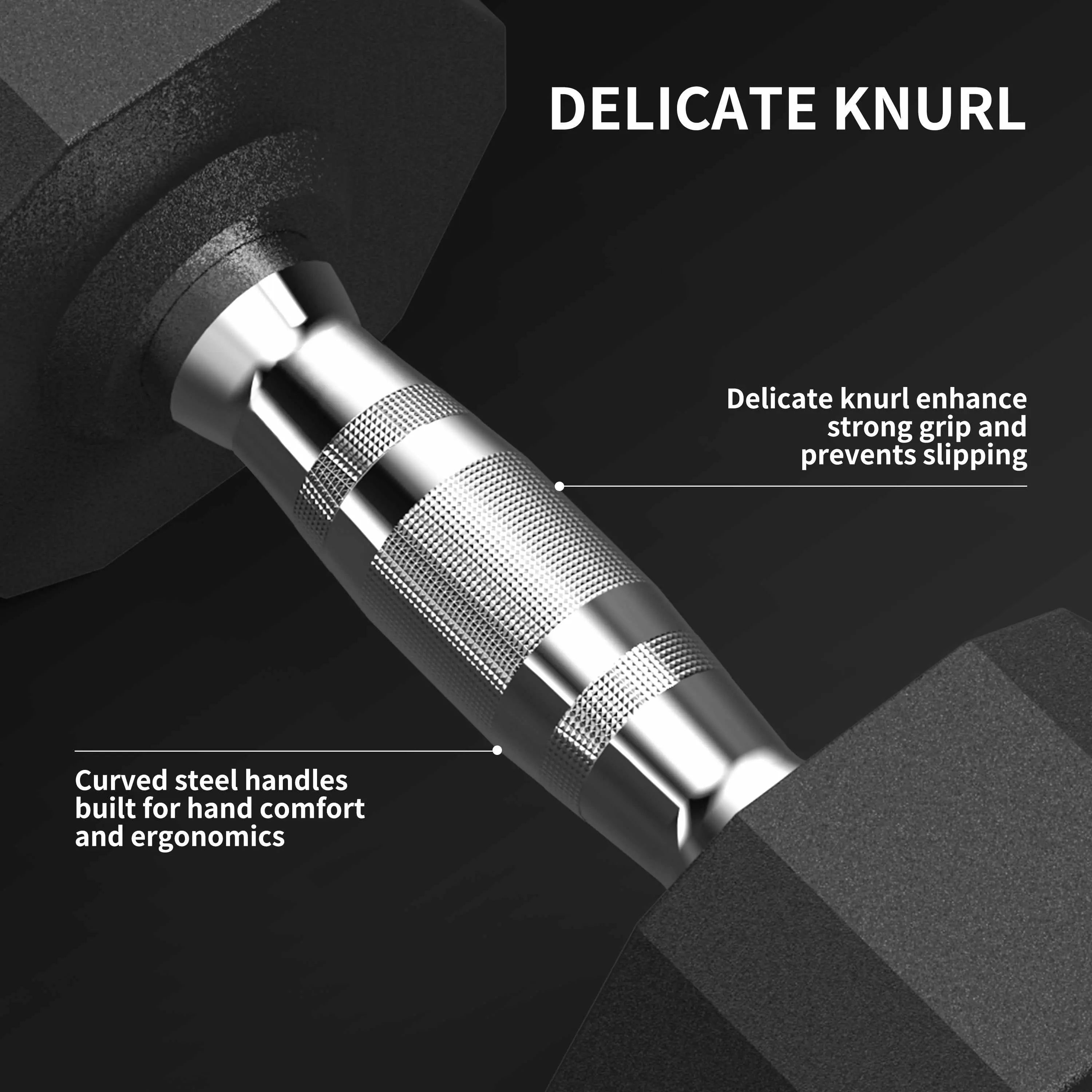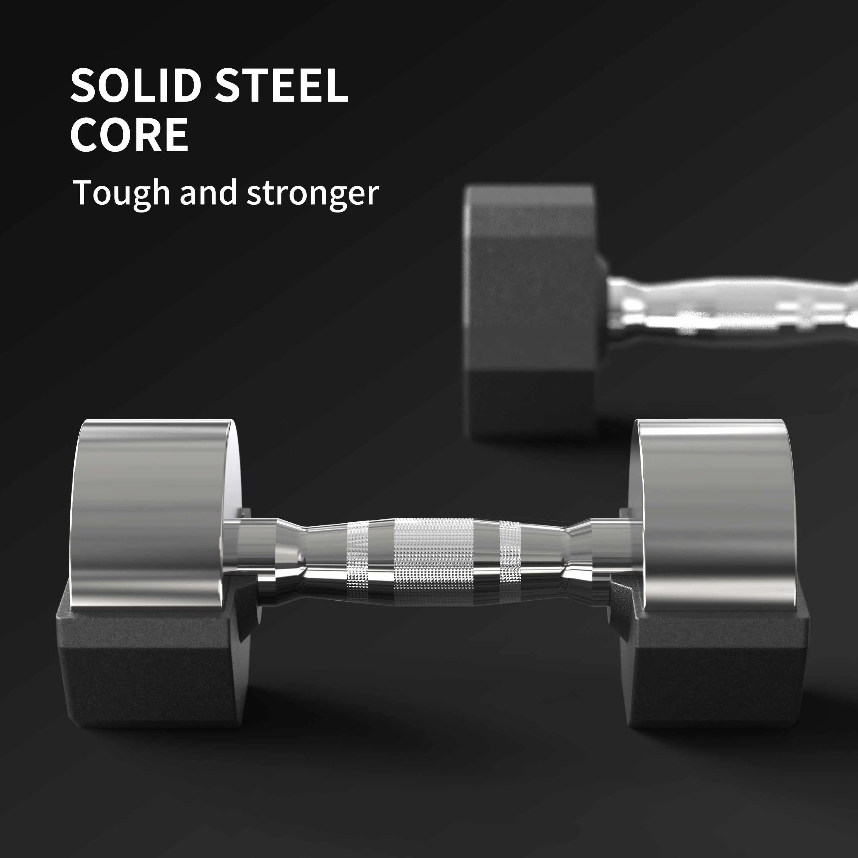 Uteži so izdelane iz enodelnega jeklenega jedra in prevlečene z visoko gostotno, okolju prijazno gumirano oblogo, ki ne oddaja neprijetnega vonja in nikoli ne zbledi. Njihova 12-kotna zasnova preprečuje kotalkanje, ergonomski kovinski ročaji z natančnim knurlingom pa zagotavljajo stabilen oprijem tudi pri intenzivnih treningih.