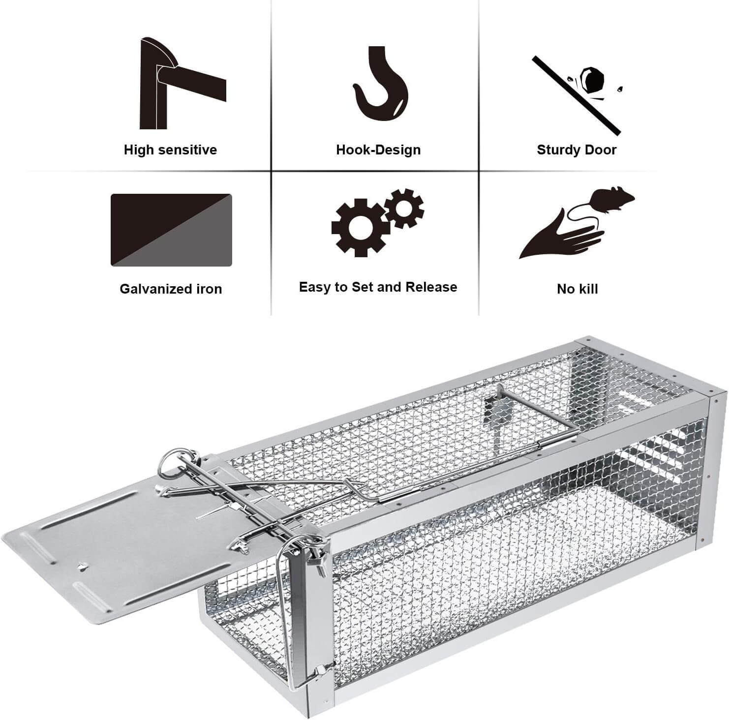 Visoko učinkovita, humano zasnovana past za varno ujetje miši, podgan, hrčkov, kuncev, voluharjev in drugih manjših živali – popolna za uporabo v domu, garaži, vrtu ali na prostem. Past je izdelana iz izjemno trpežne kovinske mreže, pripravljena za uporabo takoj po odprtju embalaže in omogoča večkratno ter dolgotrajno uporabo brez kemikalij.
