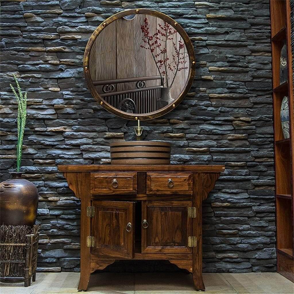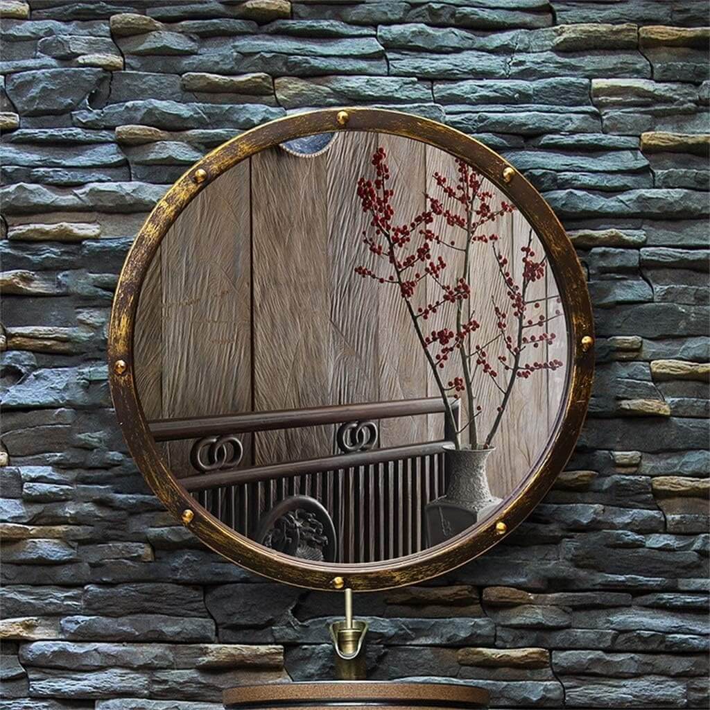 Retro stensko ogledalo združuje vintage industrijski slog z uporabnostjo, primerno za kopalnice, bare, kavarne in druge prostore.