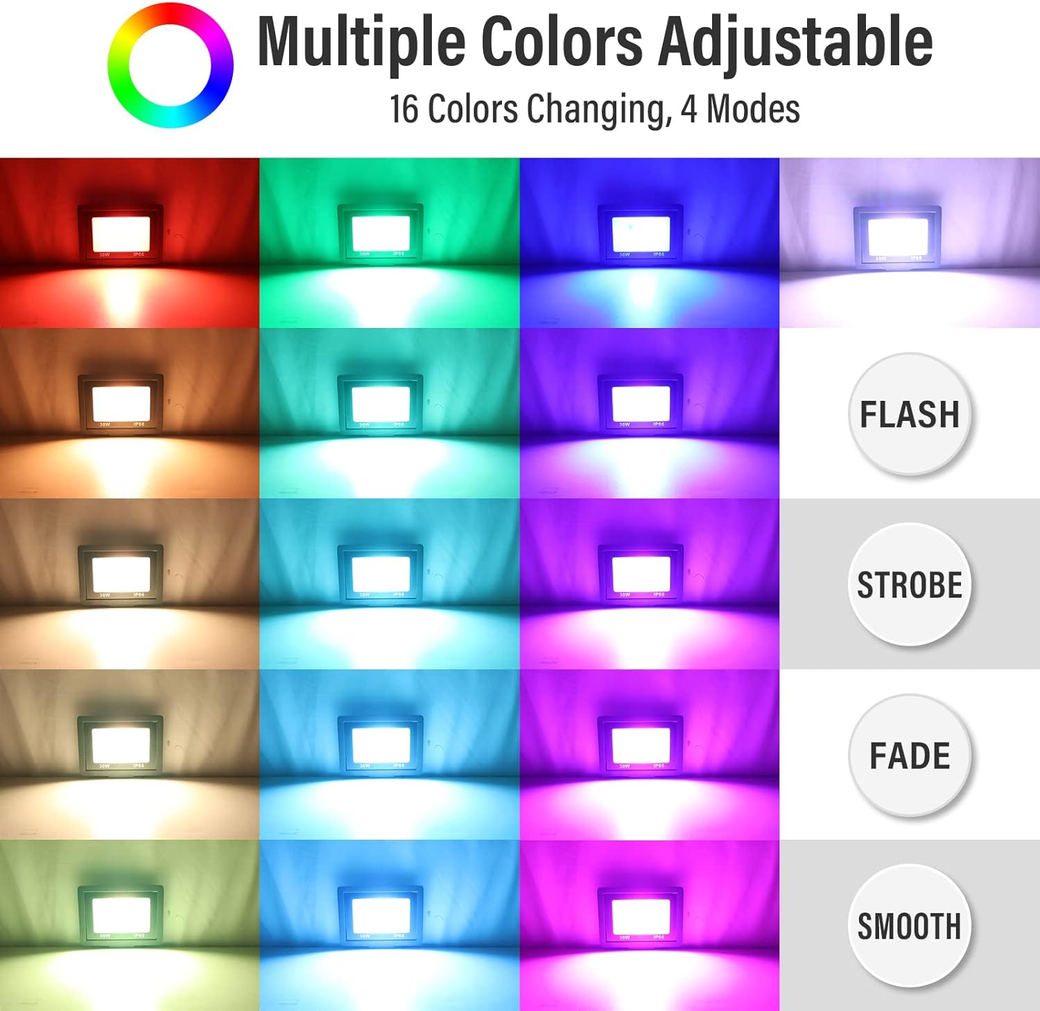 RGB LED reflektor oddaja 3000 lumnov svetlobe in omogoča izbor med 16 različnimi barvami in 4 načini delovanja. Opremljen je z spominom nastavitev, zato si zapomni zadnjo izbrano barvo po izklopu. Vodotesna zaščita IP66omogoča uporabo na prostem v vseh vremenskih pogojih.