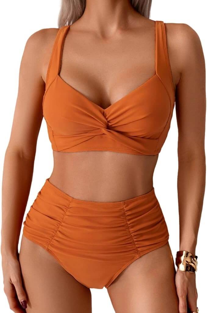 Ta elegantni dvodelni bikini združuje moderen dizajn, udobno prileganje in učinek oblikovanja postave, zato je popolna izbira za plažo, bazen ali vodne športe. Zahvaljujoč križnemu sprednjemu izrezu, visokemu pasu in nastavljivim širokim naramnicam laskavo poudari ženske obline, hkrati pa zagotovi stabilnost in podporo med gibanjem.