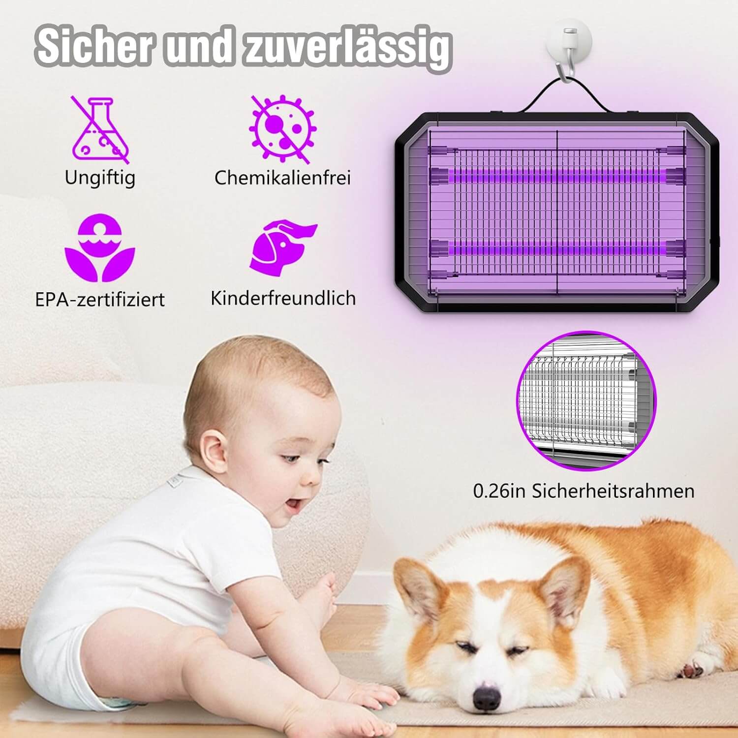 Električni uničevalec insektov s 4200 V močnim omrežjem nudi učinkovito odstranjevanje komarjev, muh in drugih letečih insektov. Zaradi tihega delovanja in možnosti obešanja je primerna za različne prostore v notranjosti in na pokritih zunanjih površinah.