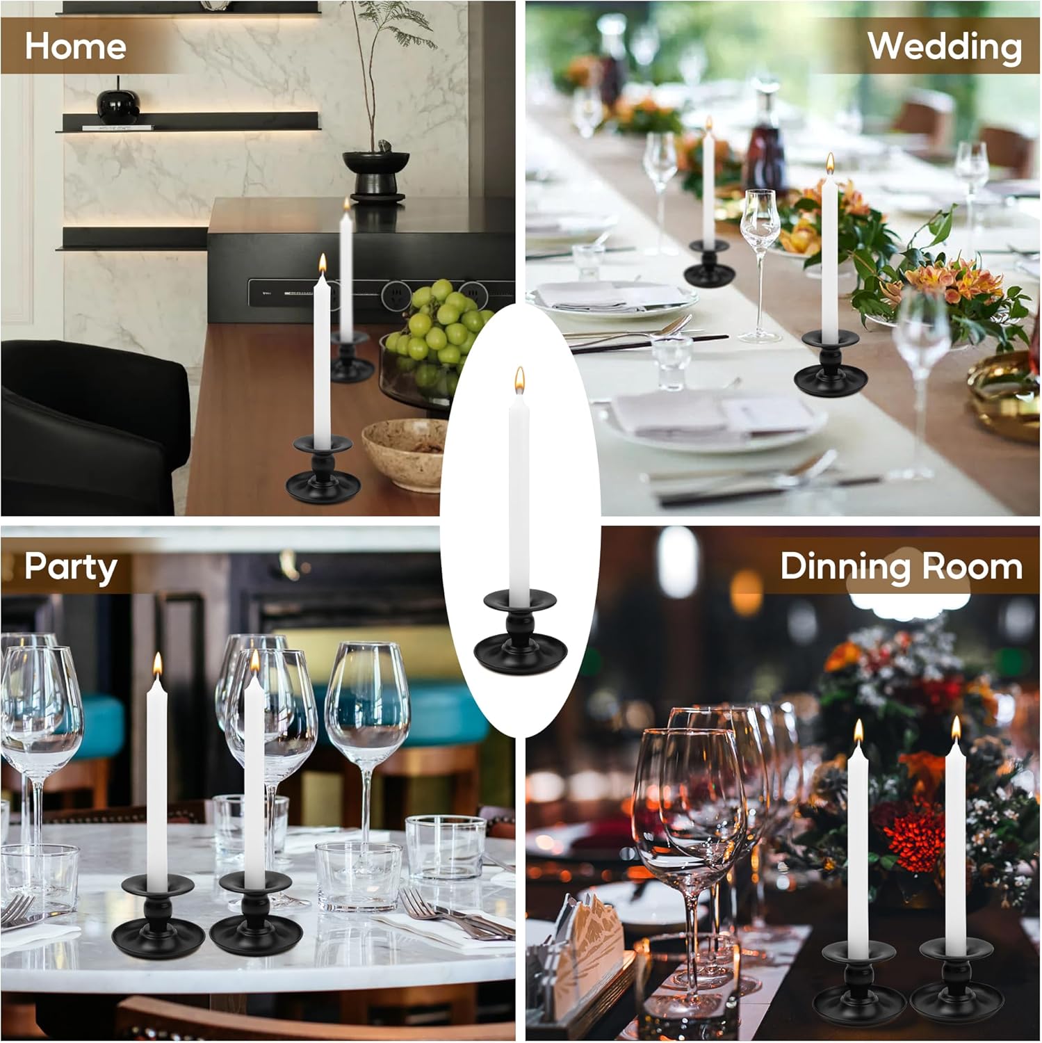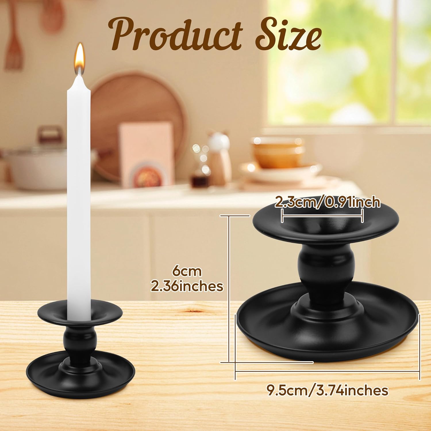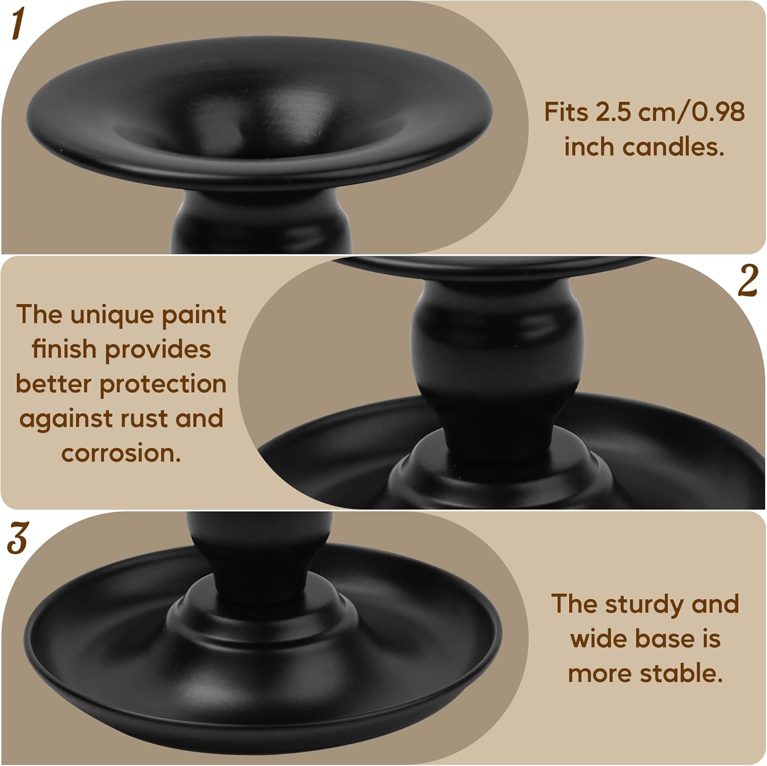 Elegantna kovinska svečnika v črni barvi sta izdelana iz trpežnega železa, primerna za okrasitev mize ob večerjah, porokah ali praznovanjih. S prefinjenimi detajli in vintage videzom ustvarjata prijetno in toplo vzdušje. Zahvaljujoč dvojni uporabi sta primerna za različne vrste sveč.