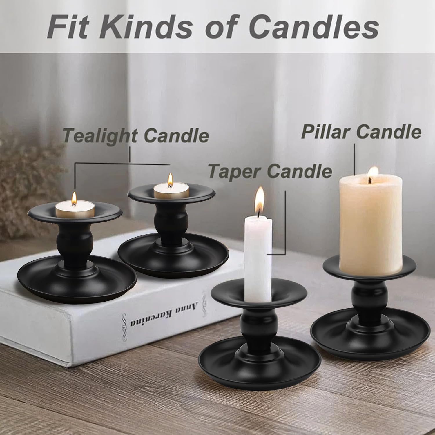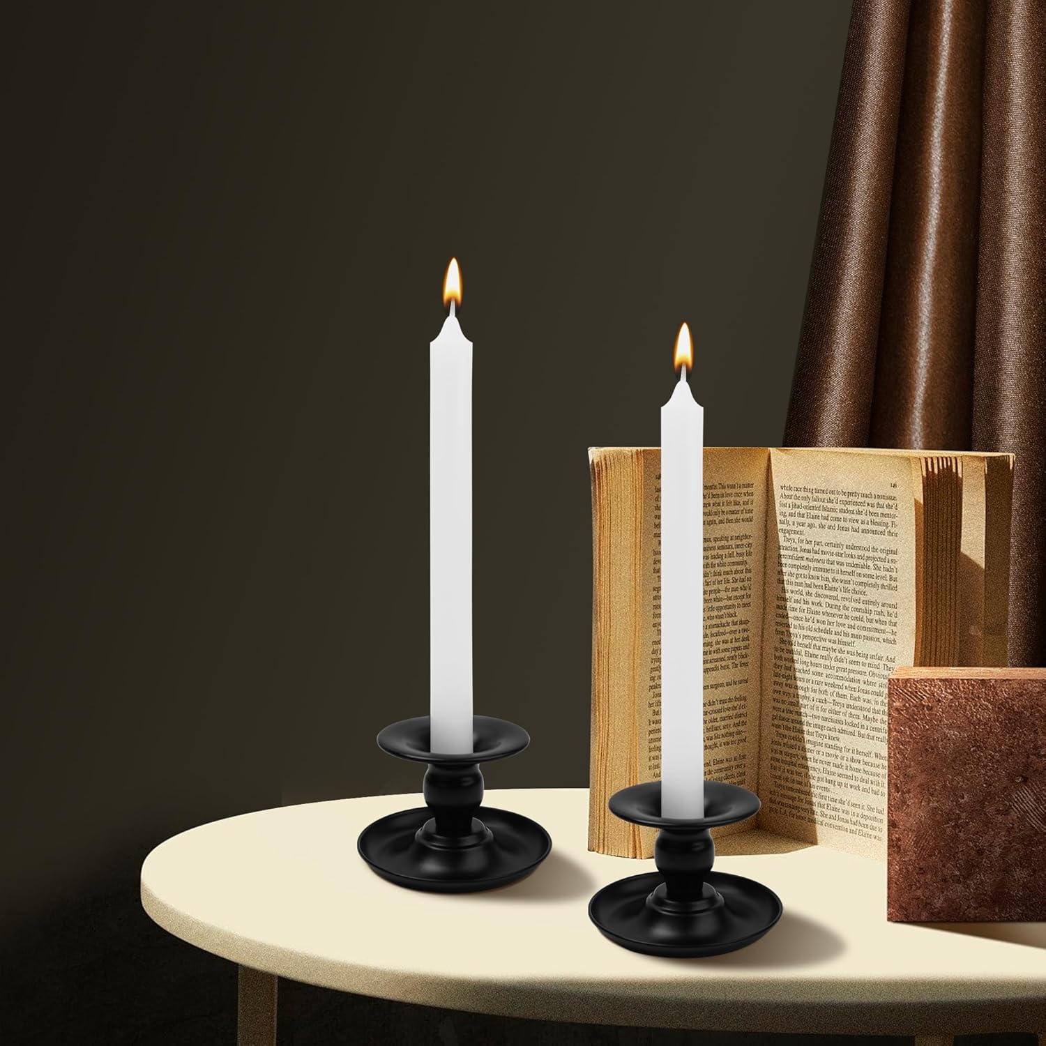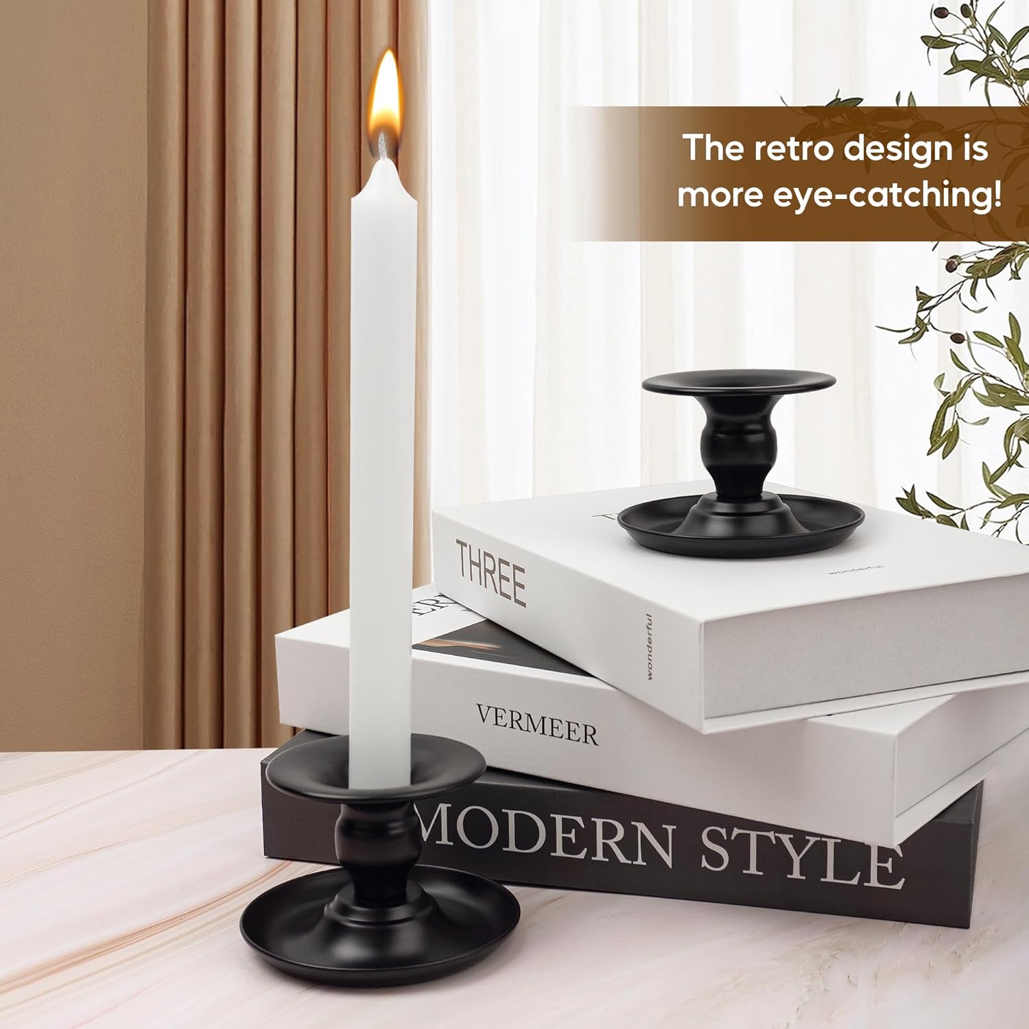 Elegantna kovinska svečnika v črni barvi sta izdelana iz trpežnega železa, primerna za okrasitev mize ob večerjah, porokah ali praznovanjih. S prefinjenimi detajli in vintage videzom ustvarjata prijetno in toplo vzdušje. Zahvaljujoč dvojni uporabi sta primerna za različne vrste sveč.