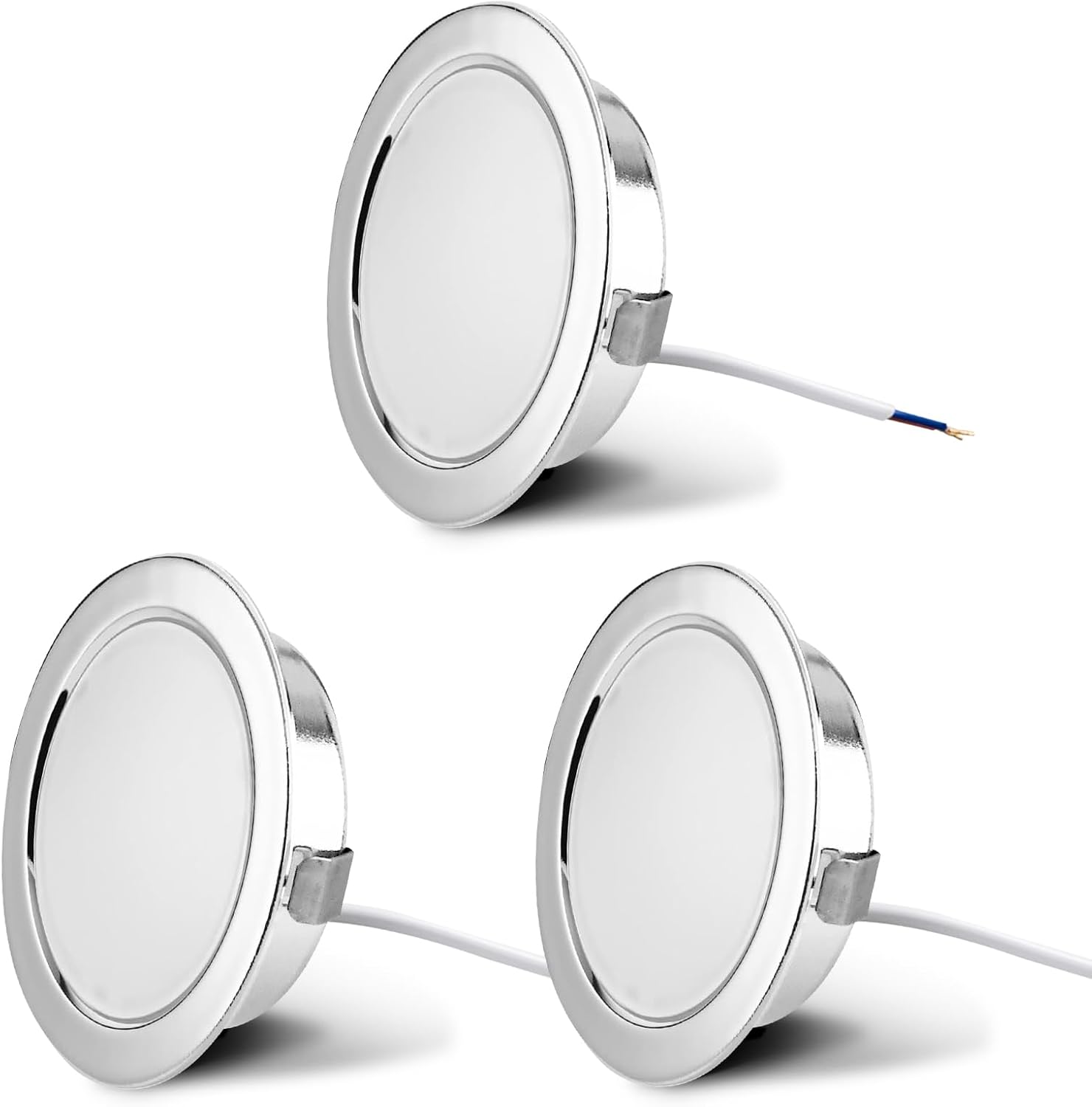 Kompaktna LED svetila z napajanjem na 230 V in toplo belo svetlobo so primerna za kopalnice, kuhinje ali omarice. Namestitev je enostavna brez potrebe po transformatorju. Zahvaljujoč izjemno plitki obliki so idealna izbira za manjše prostore.