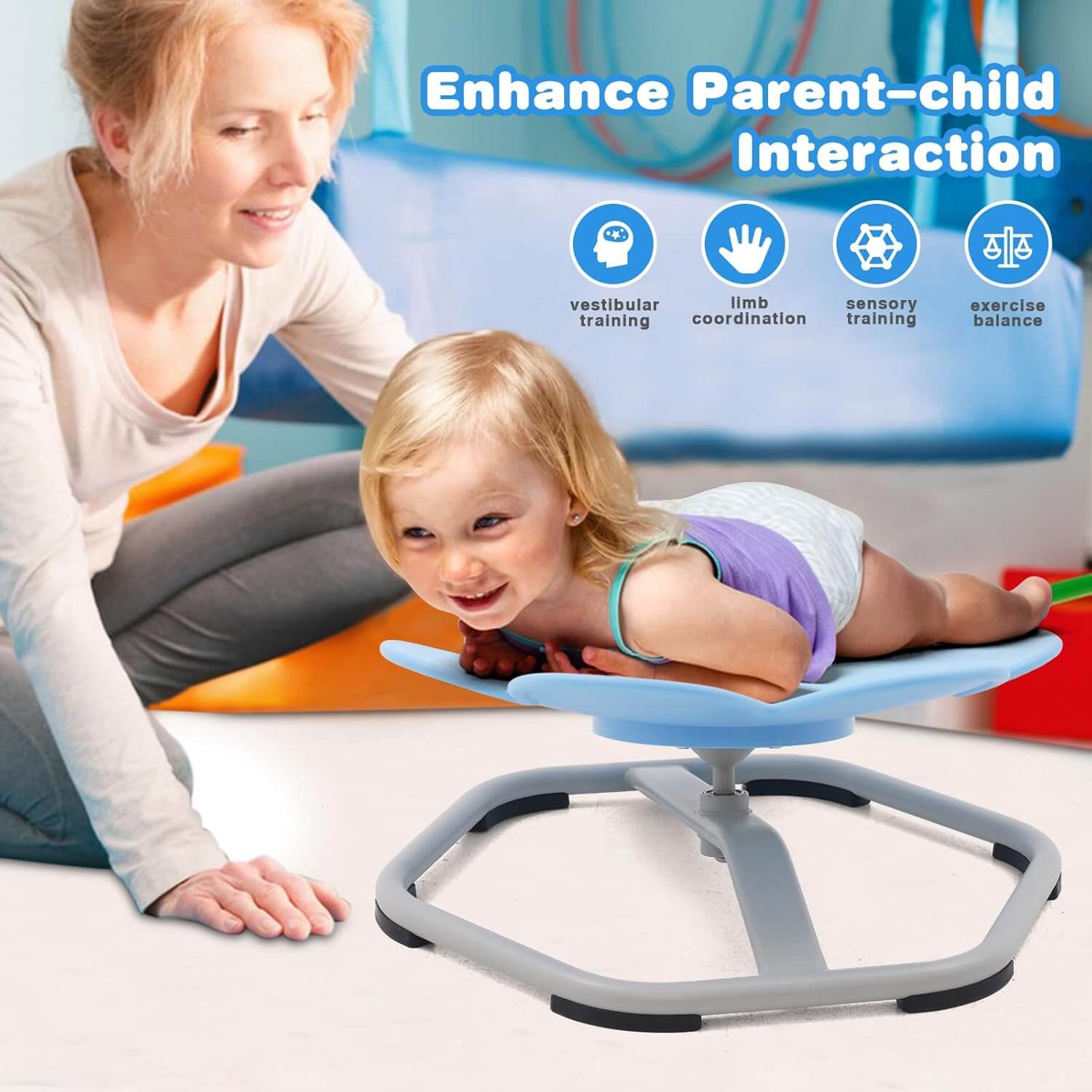Senzorični vrtljivi stol je zasnovan za razvoj ravnotežja, koordinacije in gibalnih spretnosti pri otrocih. Izdelan je iz trpežnih materialov, ima nedrsečo kovinsko osnovo ter nudi 360-stopinjsko vrtenje z majhnim uporom. Primeren je za igro doma ali na prostem in nudi sproščujočo, a hkrati spodbudno senzorično izkušnjo.