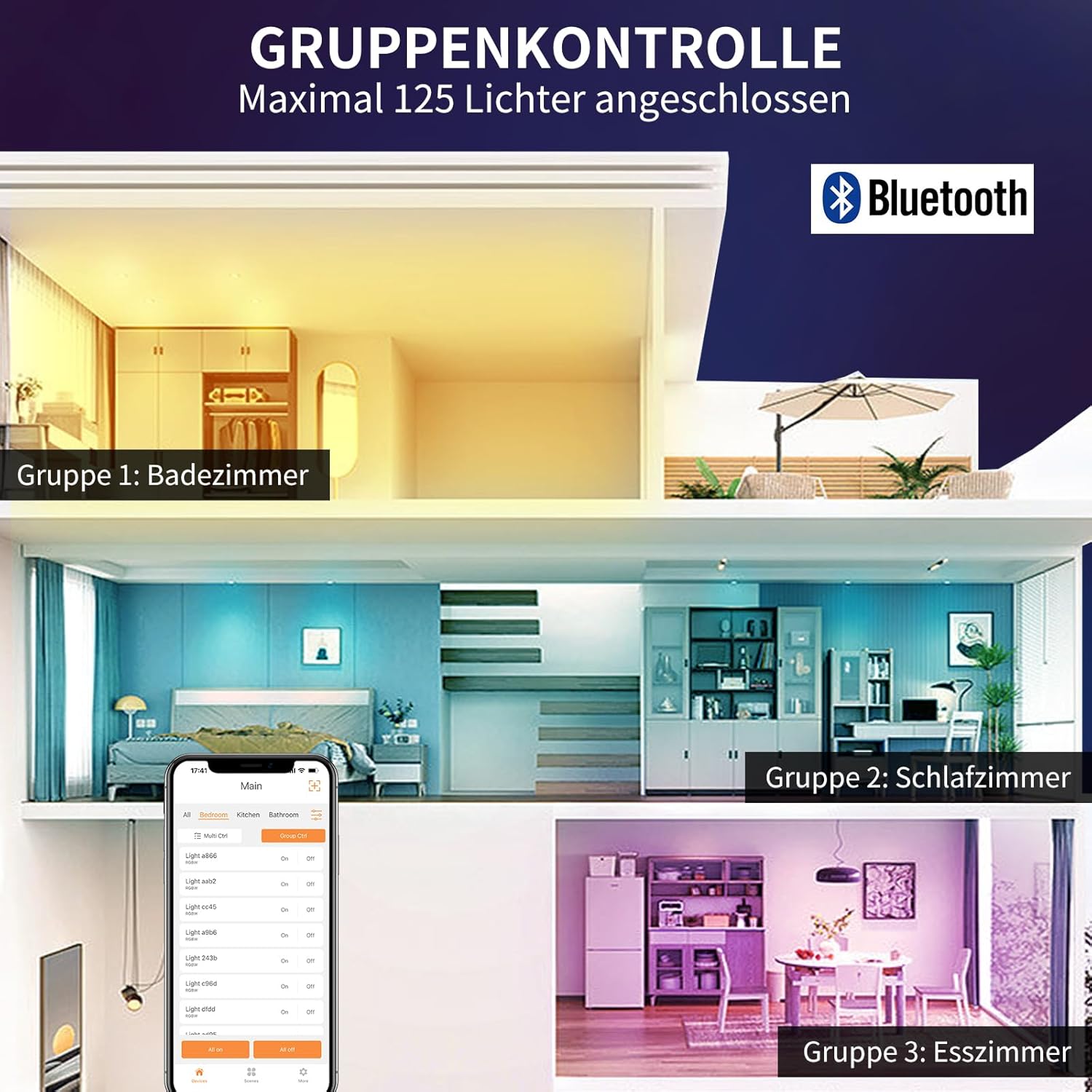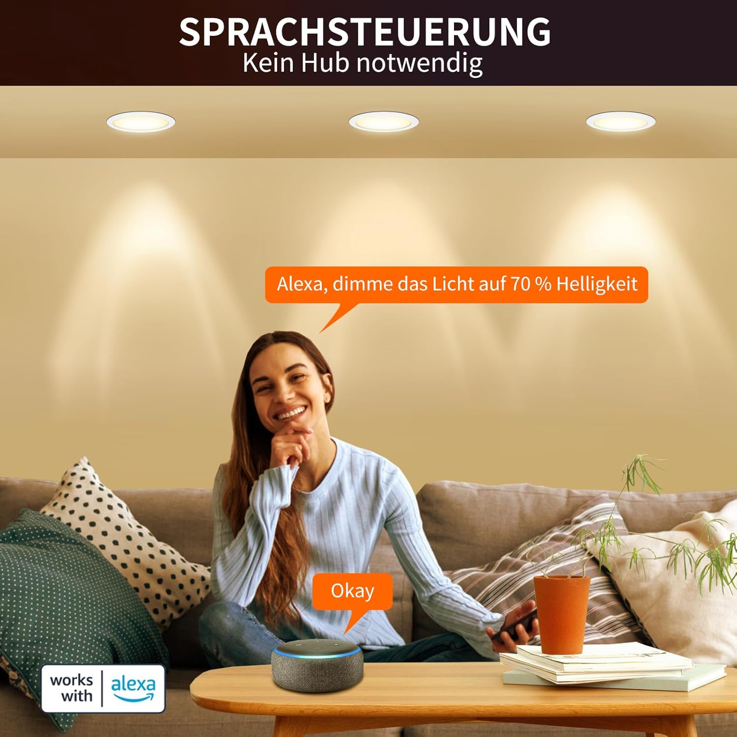 Pametne LED vgradne svetilke RGBW z močjo 10 W in svetilnostjo 1000 lm omogočajo barvito osvetlitev z 16 milijoni barv in toplo belo (2700 K). Upravljanje prek aplikacije ali z glasom (Alexa) omogoča popoln nadzor brez potrebe po daljincu ali Wi-Fi povezavi. Sinhronizacija z glasbo in različni svetlobni načini ustvarijo popolno vzdušje za vsak prostor ali priložnost.