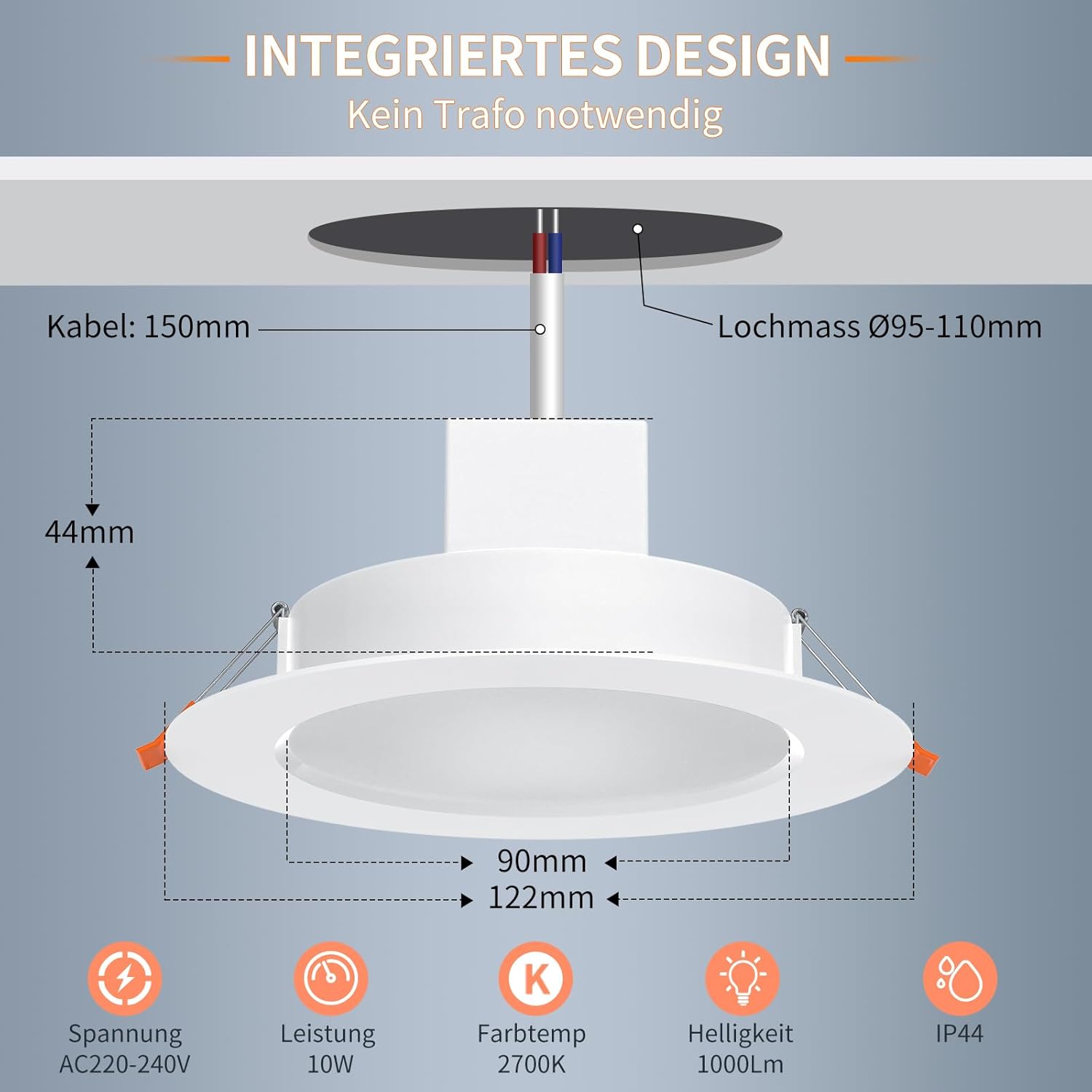 Mere vgradnje: Izrez Ø95–110 mm, globina 44 mm