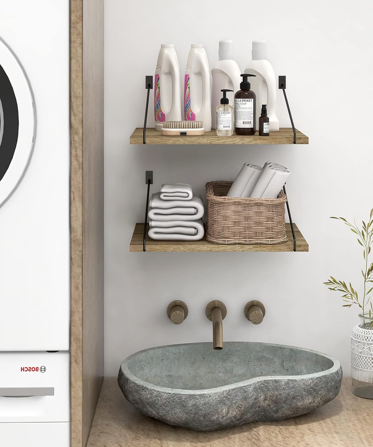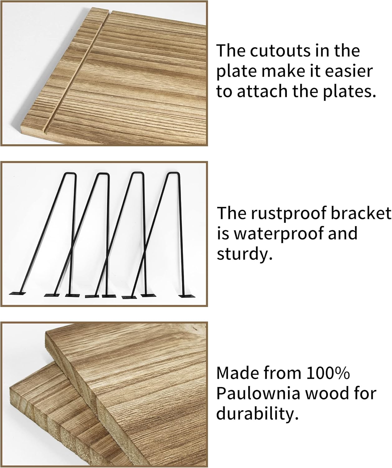 Iz masivnega lesenega materiala Paulownia izdelana stenska polica nudi dvojno globino za shranjevanje večjih naprav ali okrasnih predmetov. Opremljena je z ojačanim kovinskim ogrodjem, ki zagotavlja stabilnost in nosilnost do 14 kg. Polica ima odstranljive plošče, ki omogočajo enostavno čiščenje in prilagodljivo uporabo.