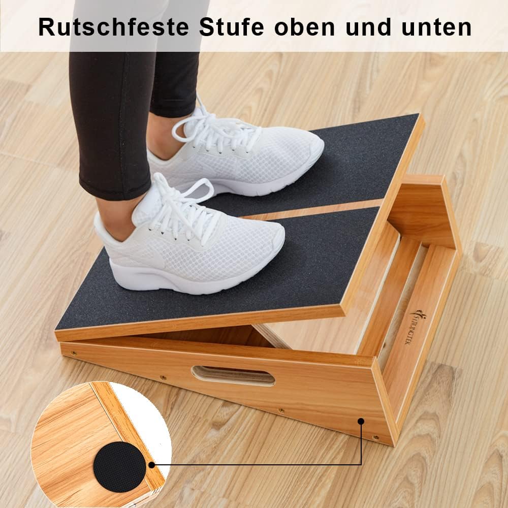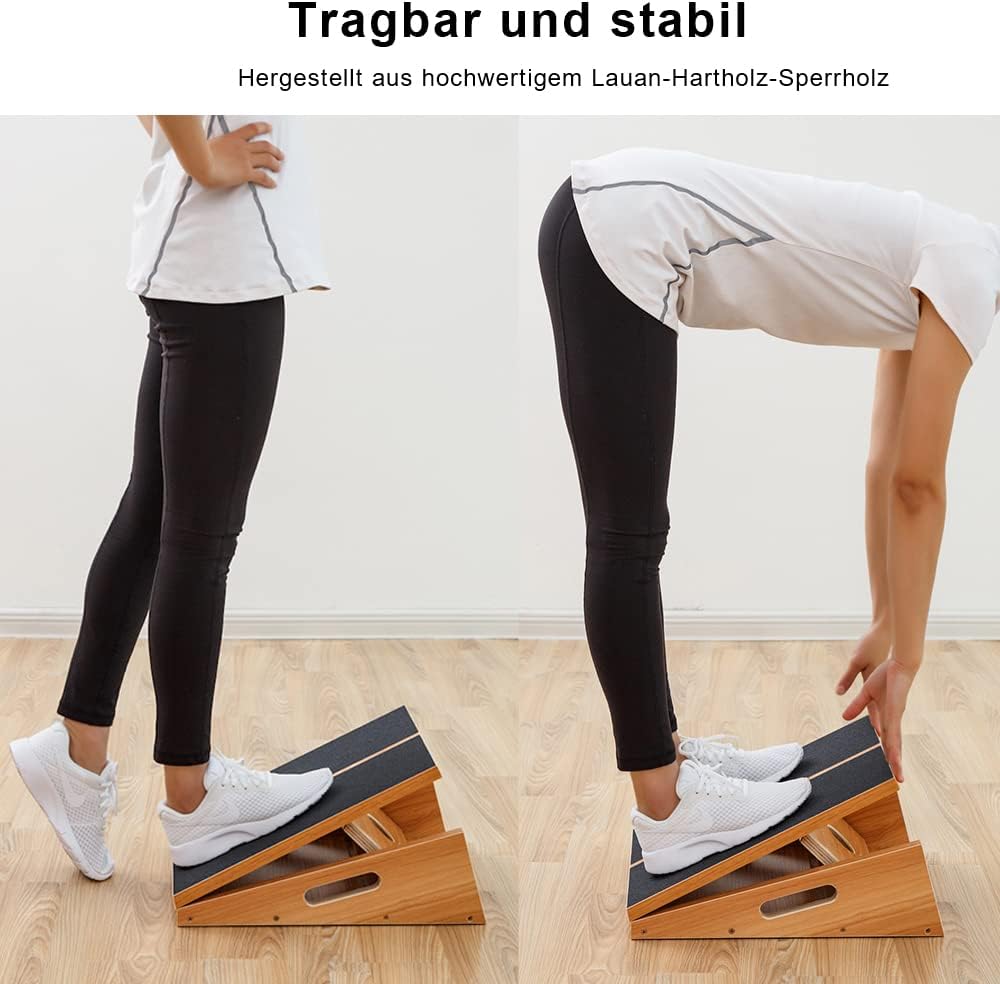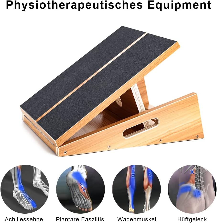 Ergonomska poševna deska je zasnovana za učinkovito raztezanje mečnih mišic in gležnjev ter preprečevanje poškodb. Izdelana je iz kakovostnega večslojnega lesa, ima pet nastavljivih naklonov in nedrsečo površino za varno vadbo. Primerna je tako za profesionalne športnike kot začetnike in osebe v fizioterapiji.