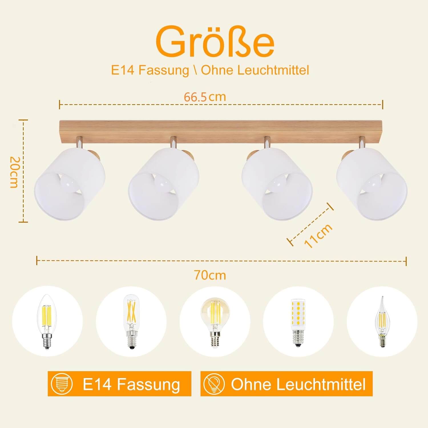 Leseni stropni lestenec s 4 E14 žarnicami ponuja odličen retro dizajn, ki je primeren za različne prostore, kot so dnevne sobe, kuhinje in hodniki. Z možnostjo vrtenja 350° omogoča prilagodljivo osvetlitev in ustvarjanje tople atmosfere.